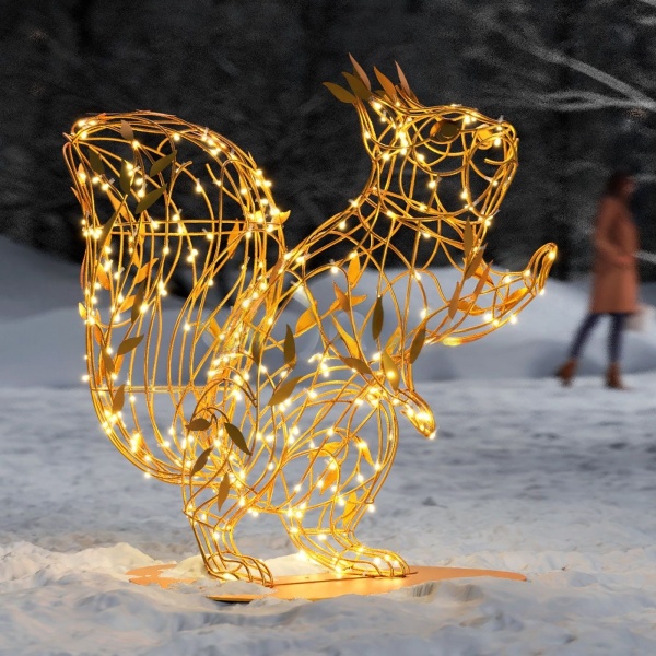 Световая фигура «Белочка» — это не просто праздничное оформление, а персонаж, оживающий в вечернем свете. Благодаря реалистичным формам и мягкому свечению, эта фигура вызывает эмоции и становится настоящим украшением ландшафта или городской среды. Она органично впишется как в детскую новогоднюю зону, так и в премиальную композицию для торгового центра, набережной или частного двора.
