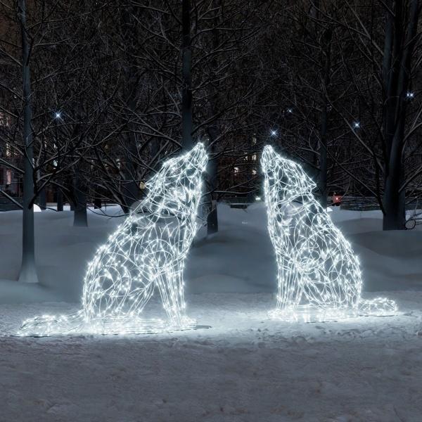 Светодиодная композиция «Воющие волки» — эффектное решение для украшения улиц, парков, ТЦ и входных групп. Две фигуры из алюминия с холодным белым свечением, высота 1,85 м. Подходит для круглогодичного использования. IP65. Гарантия 12 месяцев. Производство и монтаж — JOYLED.