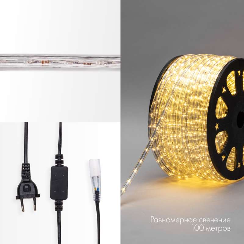 Светодиодный Дюралайт Ø13 мм, двухжильный, ТЕПЛЫЙ БЕЛЫЙ, 230В, 30 LED/м, постоянное свечение, модуль 1м, Бухта 100м