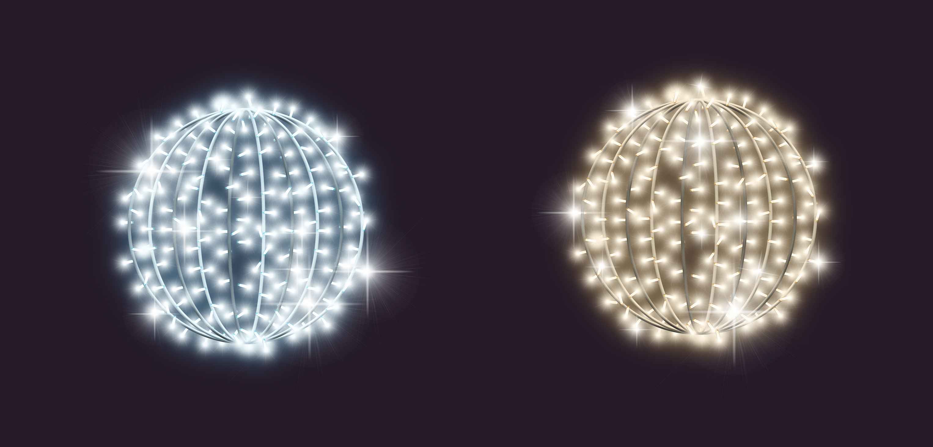 Компактная световая фигура в форме шара диаметром 40 см. Эффектно смотрится как в одиночной установке, так и в групповых композициях. Подходит для украшения улиц, входных групп, парков, коммерческих пространств. Степень защиты IP65, подходит для круглогодичного использования. Цвет свечения — тёплый или холодный.