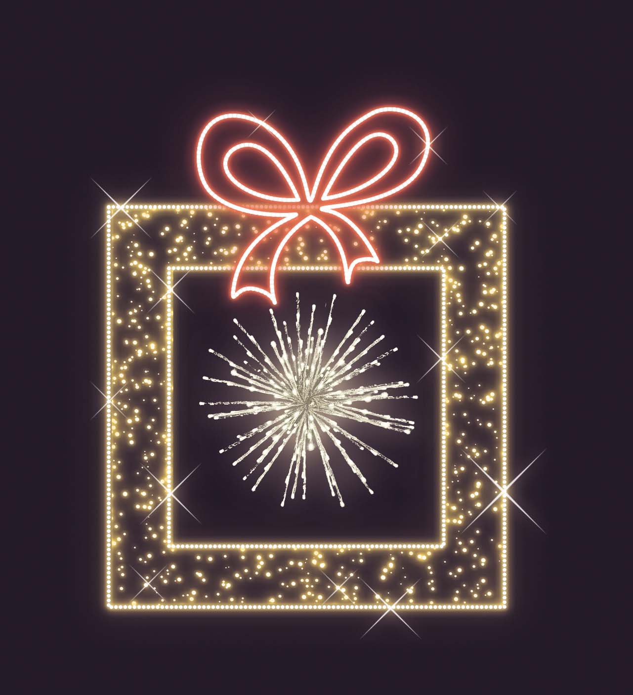 Каркас фигуры выполнен из металла с защитным покрытием, устойчивым к влаге и механическим воздействиям. Светодиодная система размещена по периметру квадрата, создавая чёткий световой контур. Это решение визуально выделяет фигуру даже в условиях слабого освещения и при неблагоприятной погоде.