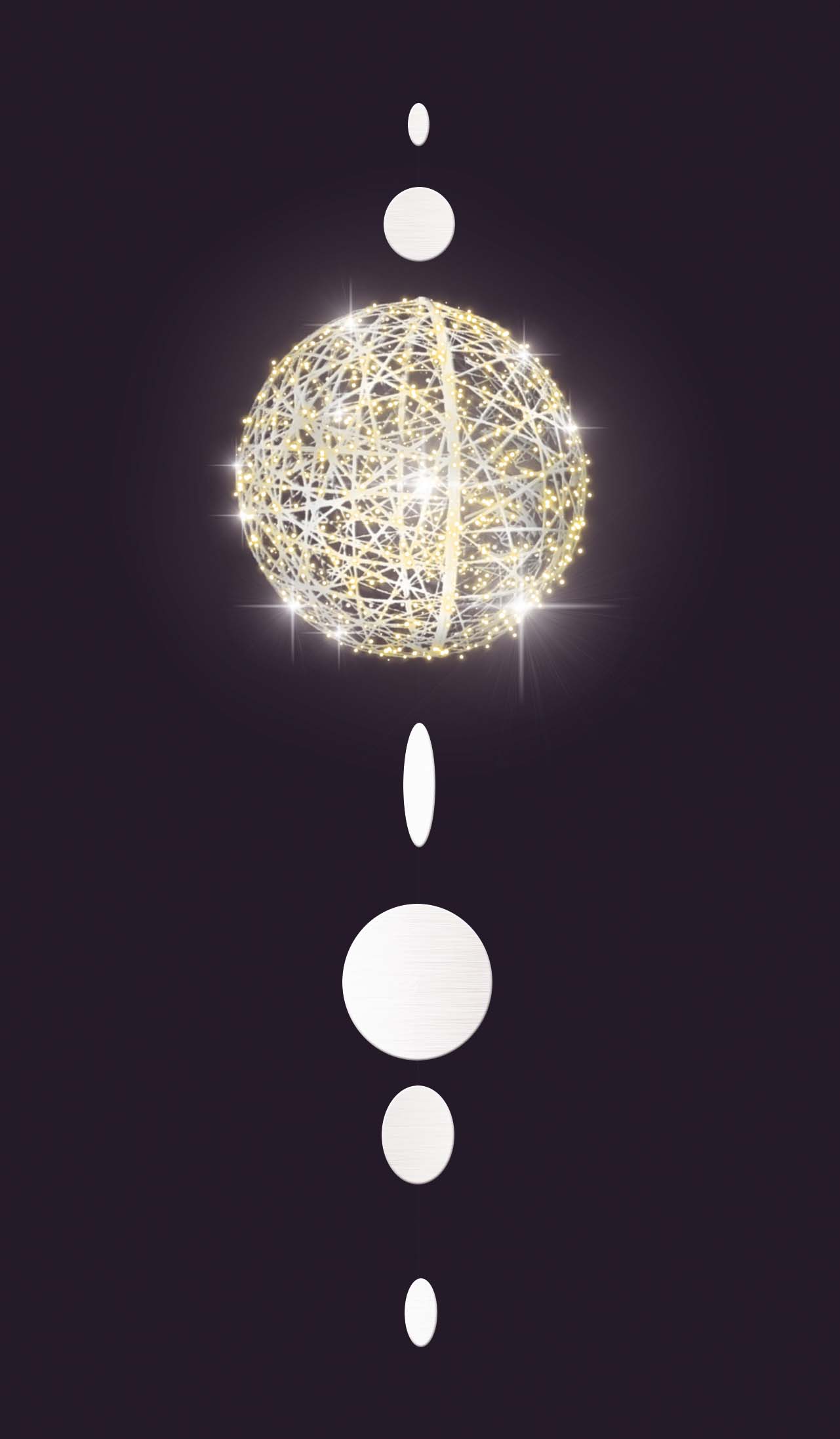 Фигура выполнена в виде вытянутого шара с объёмным эффектом. Такой формат идеально подходит для подвесного размещения — он даёт ощущение лёгкости, воздушности, парящего света. Это решение для тех, кто хочет украсить пространство нестандартно, но при этом сдержанно и эстетично.