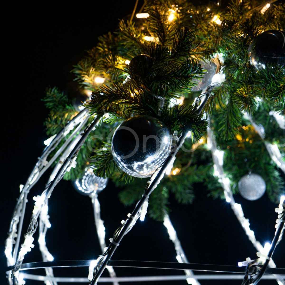 Такие световые шары особенно востребованы в новогоднем оформлении, но их можно использовать и для других мероприятий: Дня города, корпоративных праздников, фестивалей и культурных программ. Подвесные конструкции позволяют создавать необычные композиции — шары можно группировать, размещать на разной высоте, объединять с гирляндами и световыми фигурами.