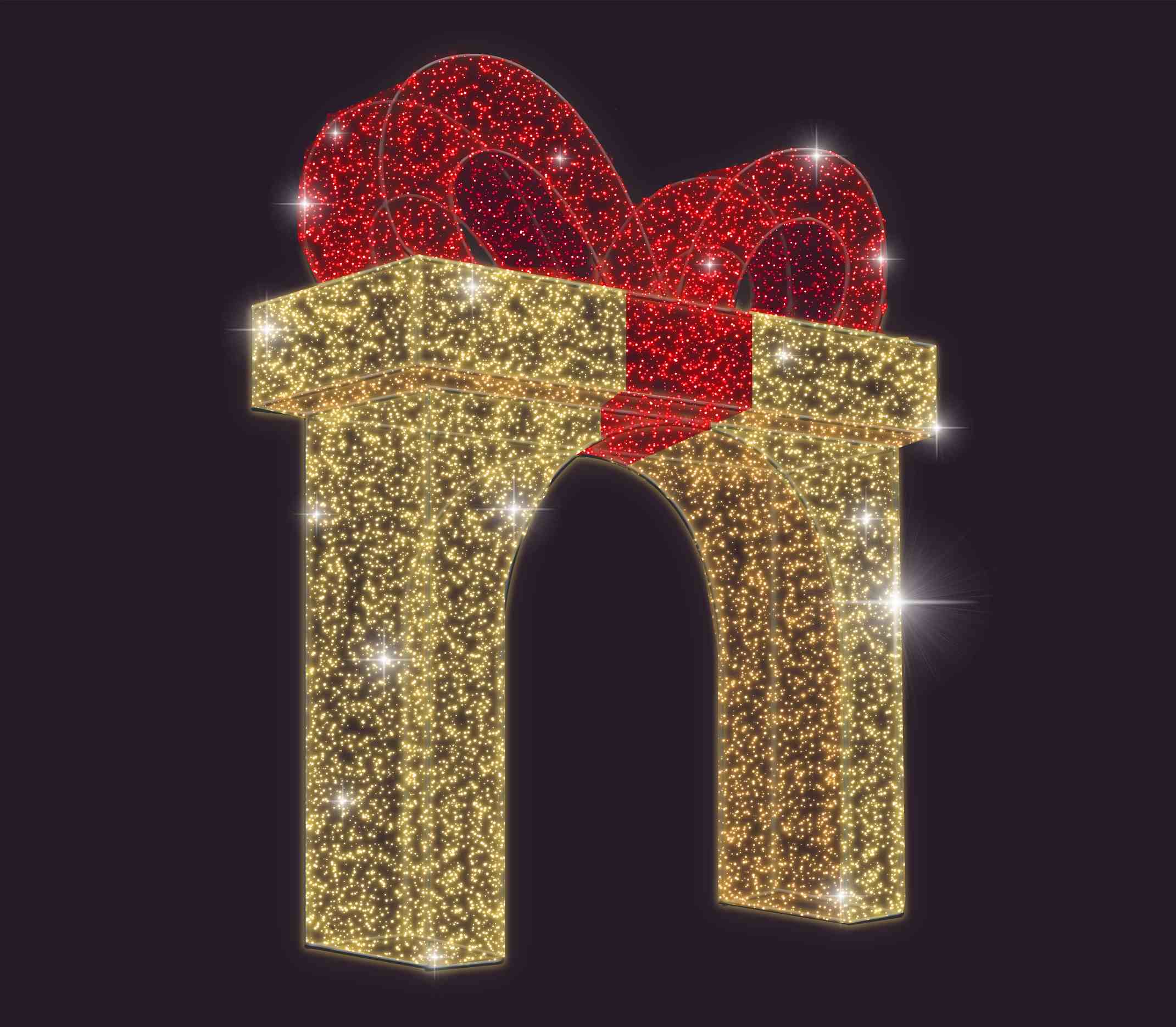 Фигура изготовлена в формате объёмной 3D-инсталляции и собирается из прочного металлического каркаса с декоративной покраской. Светодиодные нити надёжно закреплены внутри конструкции и дают равномерное тёплое свечение, обеспечивая WOW-эффект в тёмное время суток. Арка не просто украшает пространство, но и служит фотозоной и точкой притяжения — особенно во время новогодних и городских праздников.