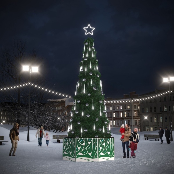 Сама конструкция продумана для быстрого монтажа и демонтажа. Все элементы — от хвои до подсветки — надёжно закреплены, а подключения входят в комплект поставки. Это позволяет сократить время установки и минимизировать затраты на обслуживание в течение всего сезона.