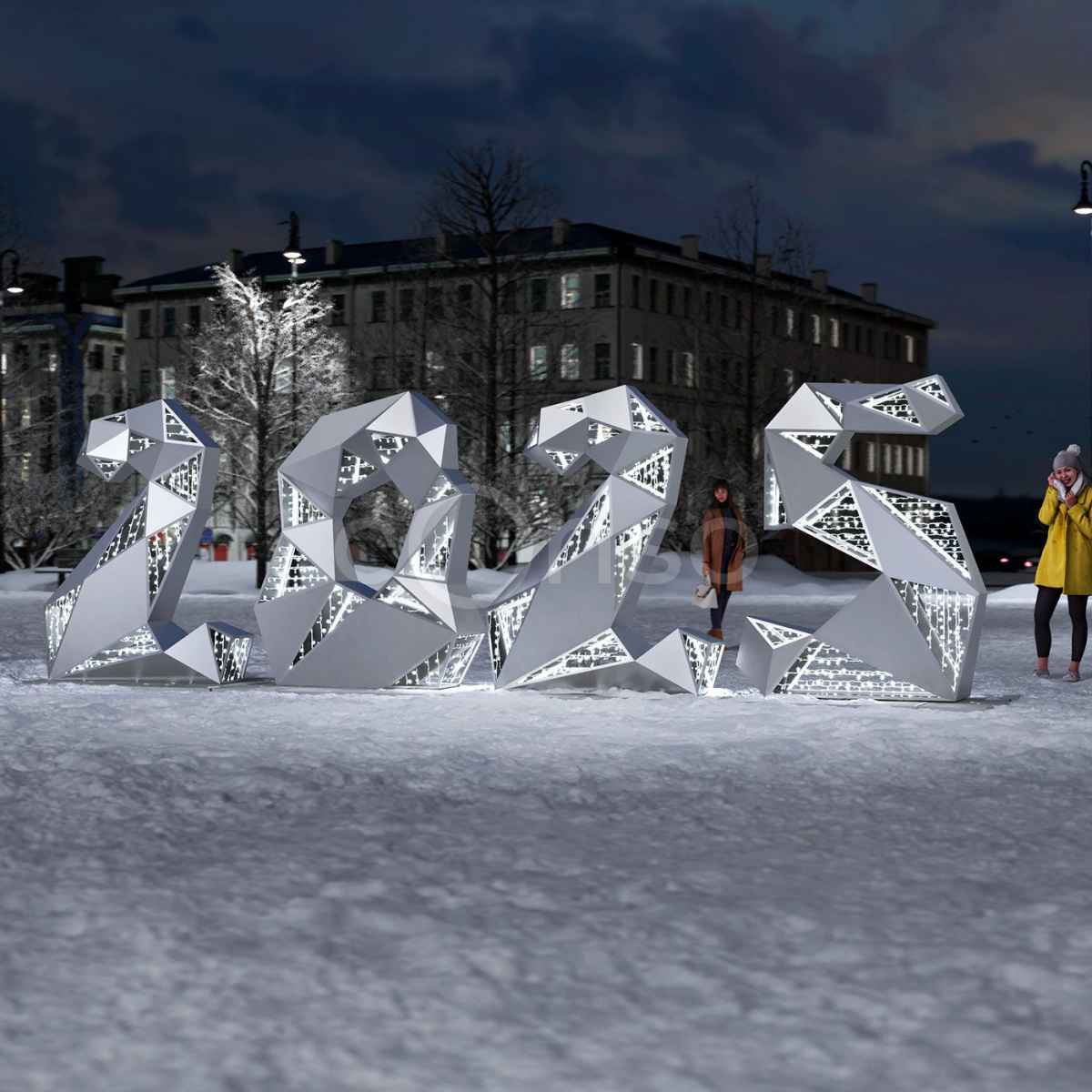 Световая фигура «Полигональные цифры 2025» — это эффектный и современный способ поздравить жителей и гостей города с Новым годом. Композиция из четырёх объёмных цифр в полигональном стиле с холодным свечением не только украшает, но и задаёт атмосферу праздника. Такая инсталляция сразу становится центральной точкой внимания: её фотографируют, размещают в соцсетях, делают частью событийной программы.