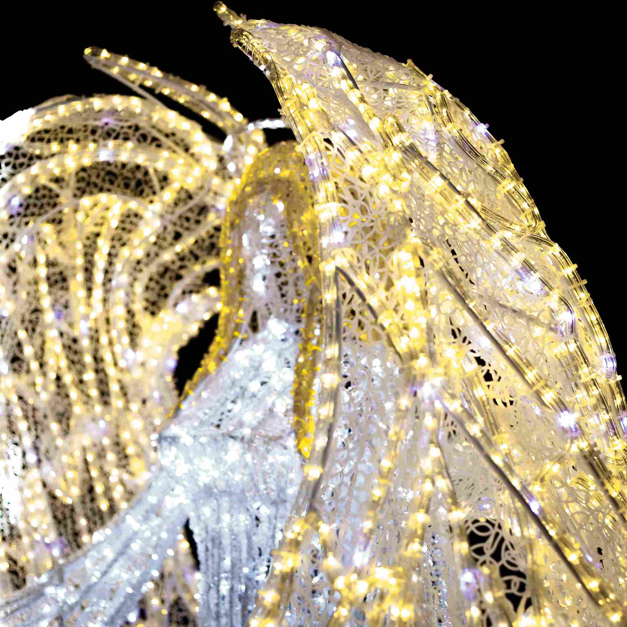«Ангел» органично вписывается как в масштабные ансамбли подсветки, так и в камерные пространства. Благодаря объёмной 3D-конструкции, его видно издалека, а мягкое сияние делает фигуру живой и выразительной. Это не просто украшение — это смысловой акцент в любом оформлении.