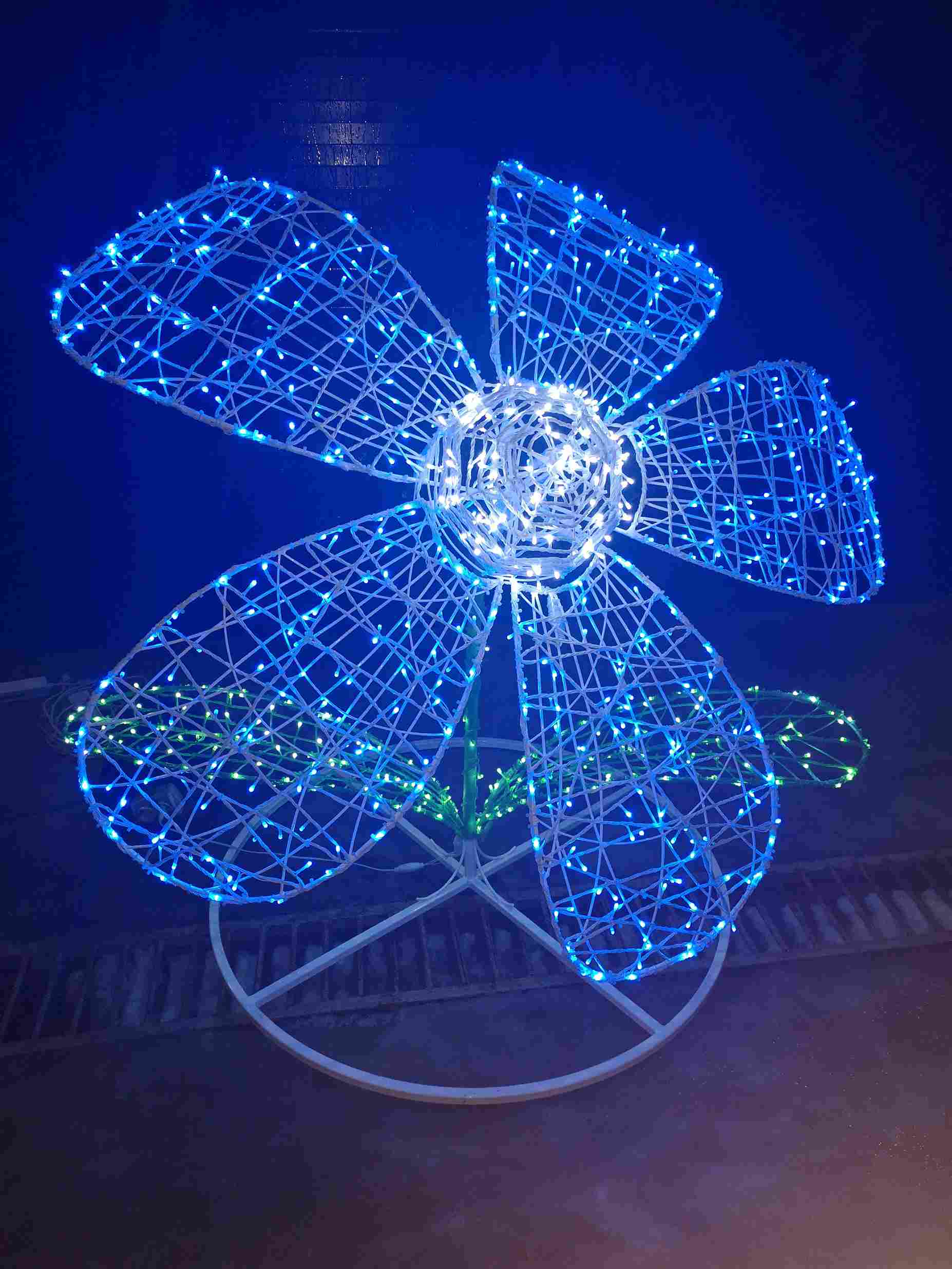 Световая фигура «Цветок» — объёмная 3D конструкция из металла с антикоррозийным покрытием. Высота — от 1 до 2 метров, цвет свечения — на выбор. Подходит для круглогодичного уличного использования. Эффектное украшение для парков, скверов, входных групп, мероприятий. Монтаж под ключ от JOYLED.