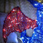 Каркас фигуры изготовлен из стали с антикоррозийным покрытием. Он выдерживает перепады температуры, влагу, механические нагрузки и рассчитан на долгую уличную эксплуатацию. Конструкция лёгкая и компактная — вес около 6 кг, размеры варьируются от 0,55 до 0,9 м по высоте. Это позволяет легко перемещать фигуру, компоновать её с другими световыми элементами и использовать даже в ограниченном пространстве — у входа в ТЦ, на лестничных маршах, в зоне парковки или в торговом павильоне.