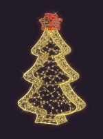 «Ёлка» хорошо работает как самостоятельный объект и как часть комплексного оформления с арками, оленями, шарами и световыми композициями. Цвет свечения — золотой — особенно тёплый и праздничный, хорошо сочетается с гирляндами и архитектурной подсветкой.