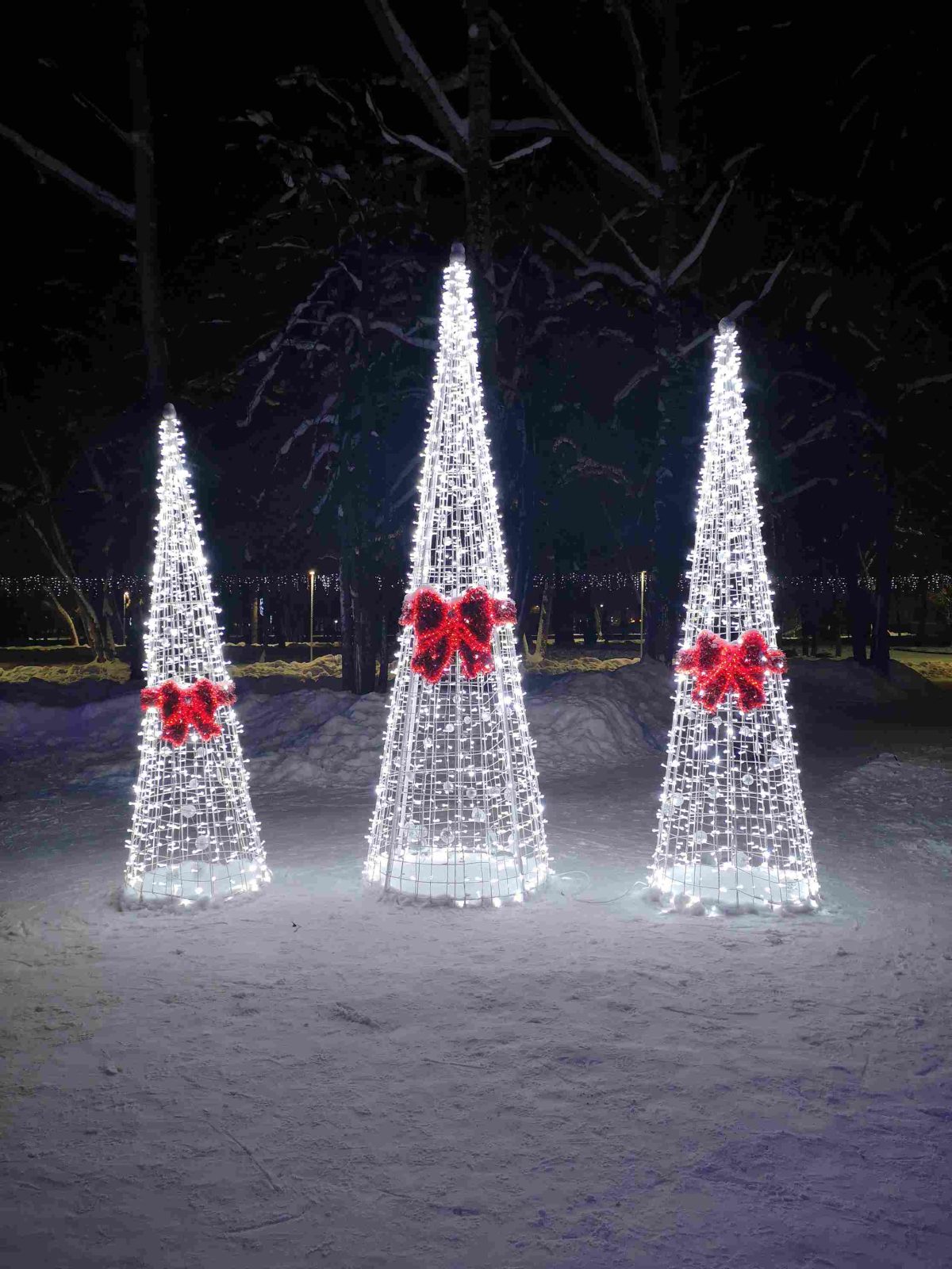 Уличная световая ёлочка с бантом: новогодняя атмосфера, которая создаёт вау-эффект