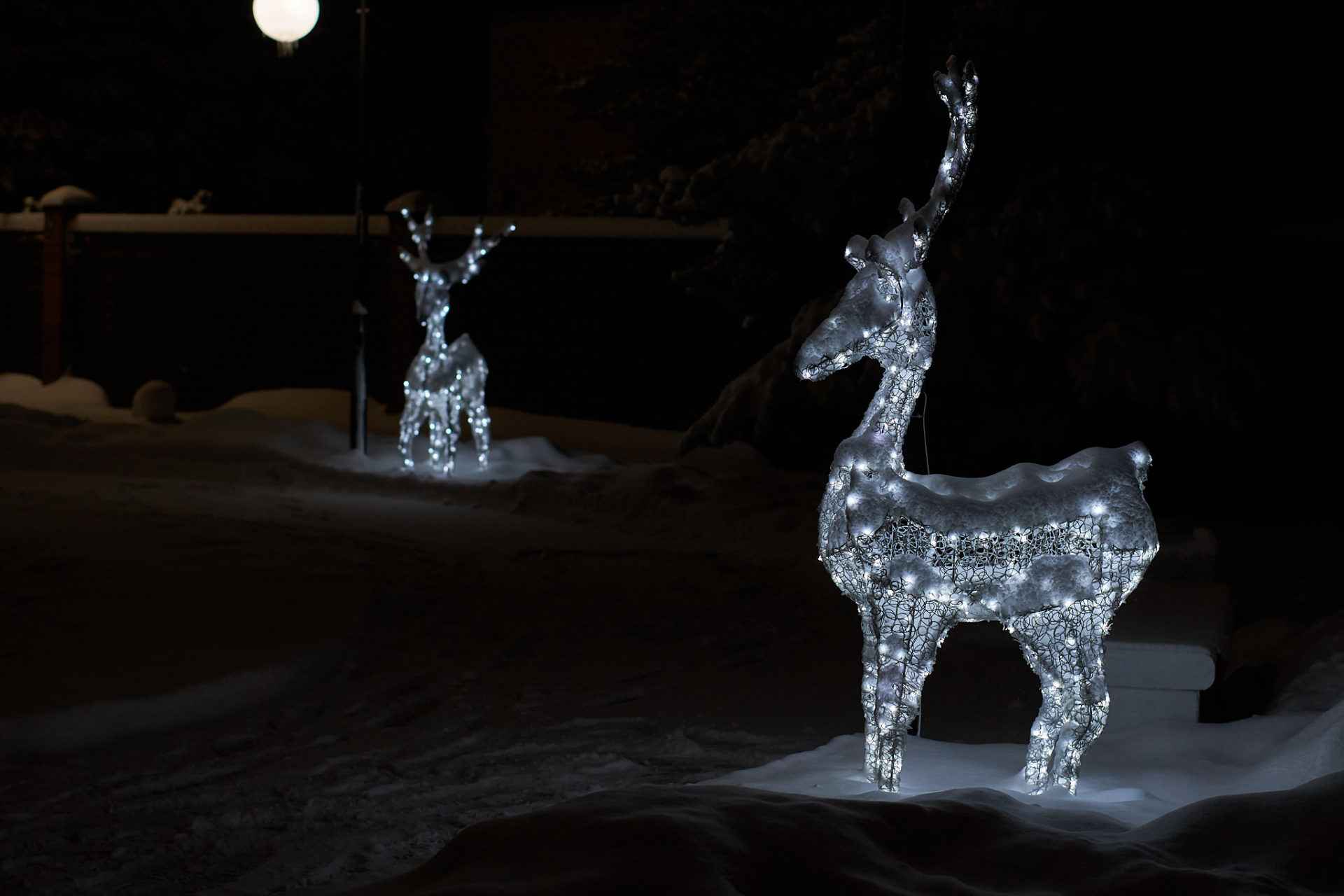 Главная особенность композиции — холодное белое свечение, которое подчёркивает изящество форм и добавляет фигуре лёгкость. Такой оттенок света напоминает о морозной зиме, хрустящем снегу и искрящихся на солнце снежинках. В вечернее время фигура производит особенно впечатляющий эффект, создавая праздничное настроение и формируя яркую фотозону.