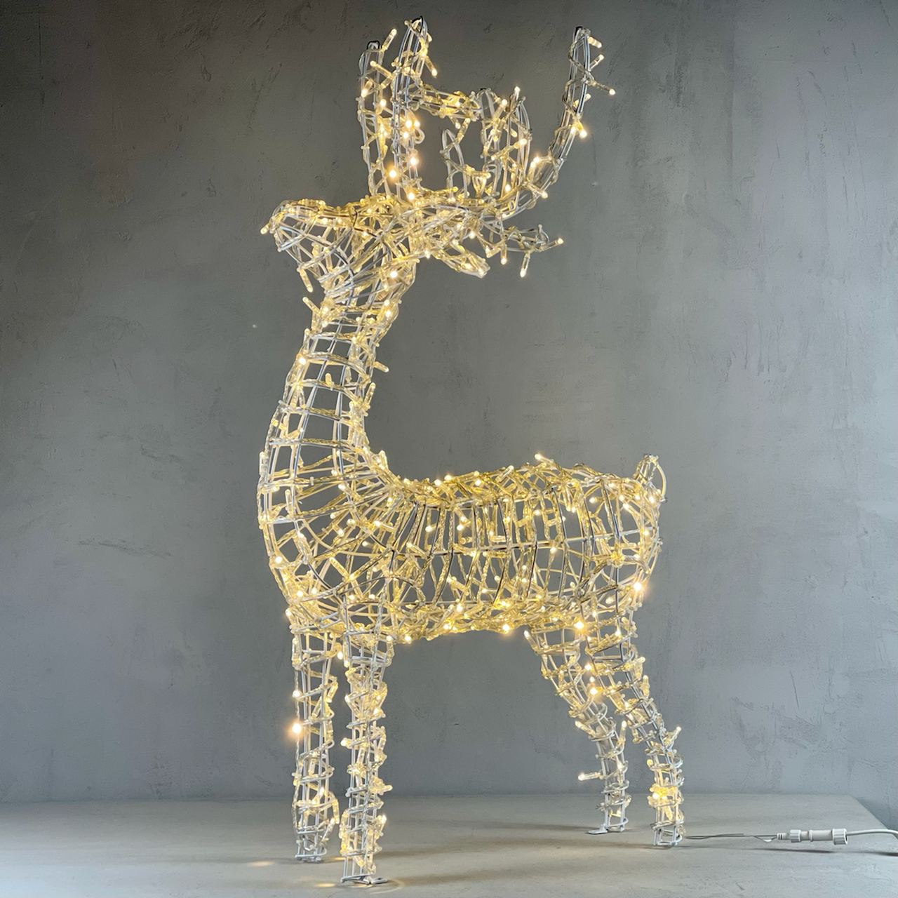 Каркас светового оленя выполнен из оцинкованной стали с порошковым покрытием — это один из самых прочных и долговечных материалов для уличного применения. Такая конструкция: