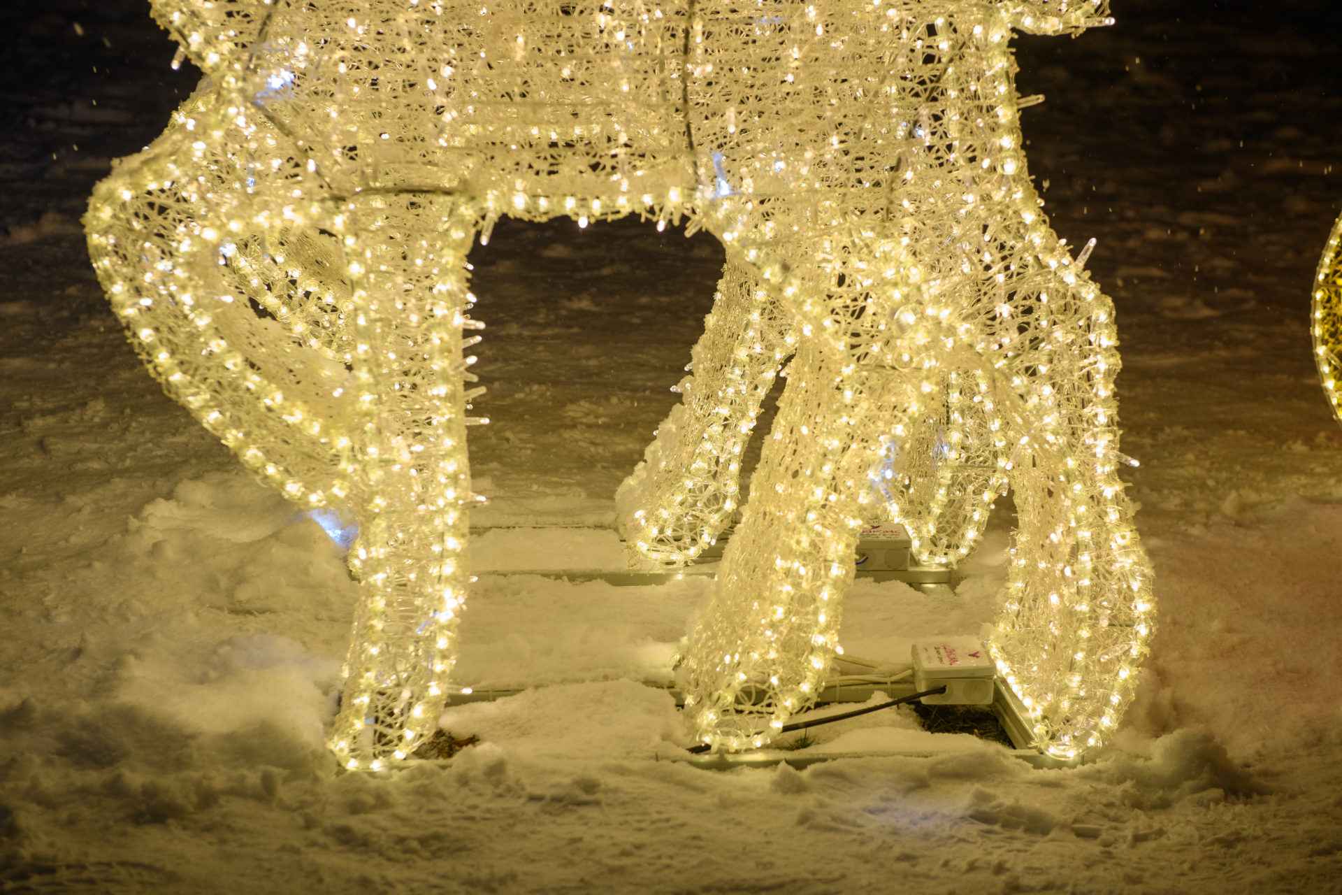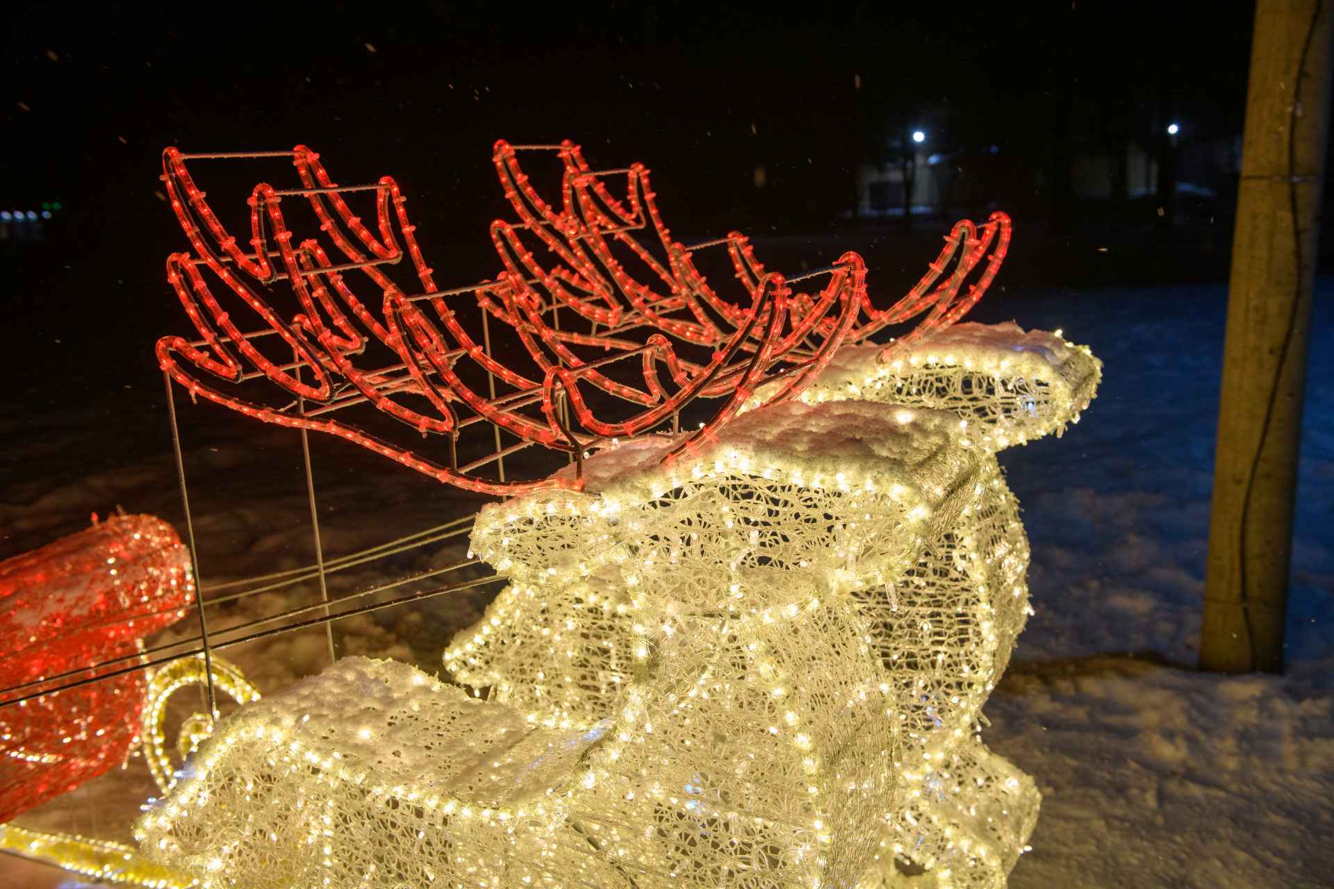 Световая фигура «Олени с санями» СК-194-2 — это масштабная уличная композиция, созданная JOYLED для праздничного оформления больших пространств. Её размеры — 4×1,8 м, что позволяет использовать фигуру как центральный акцент на площади или в парке, а также как фотозону для жителей и гостей города.