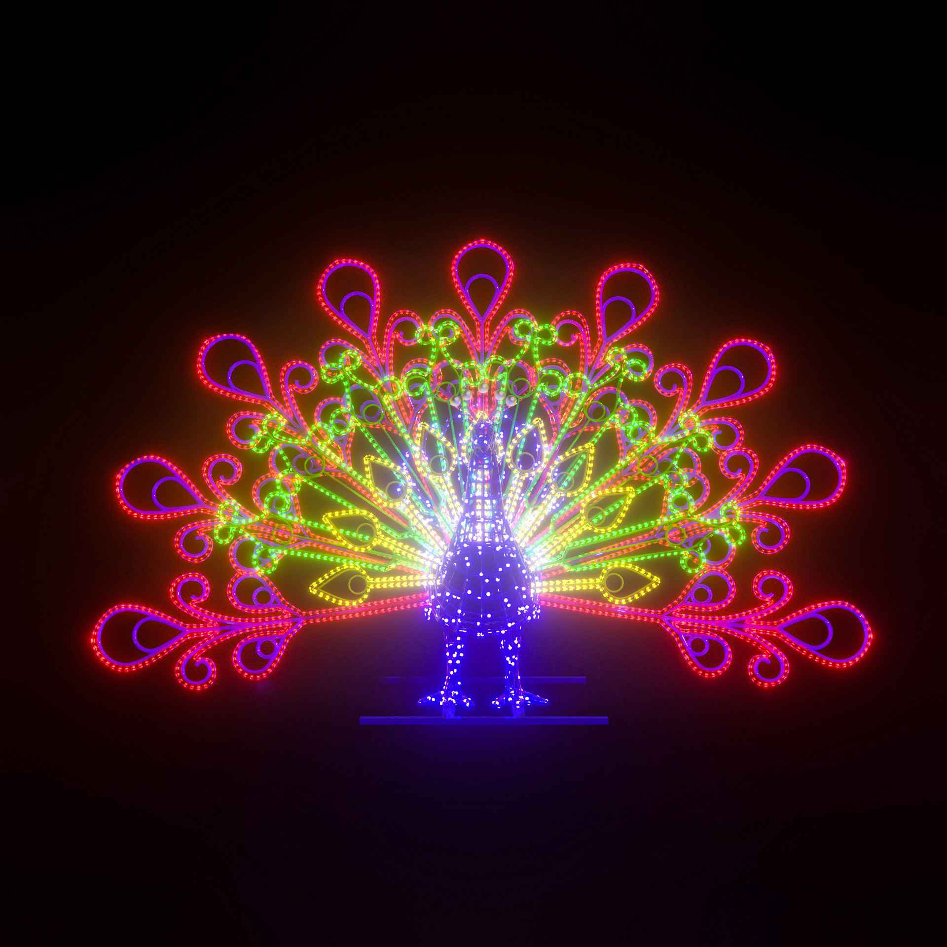Световая фигура «Павлин» ― это декоративная 3D-конструкция, созданная для оформления улиц, торговых и бизнес-центров, парков, скверов и частных территорий. Яркий павлин в сияющем свете смотрится по-настоящему величественно и становится символом красоты и праздника. Такая фигура гармонично впишется в городскую среду во время Нового года, Дня города, корпоративных мероприятий и фестивалей.