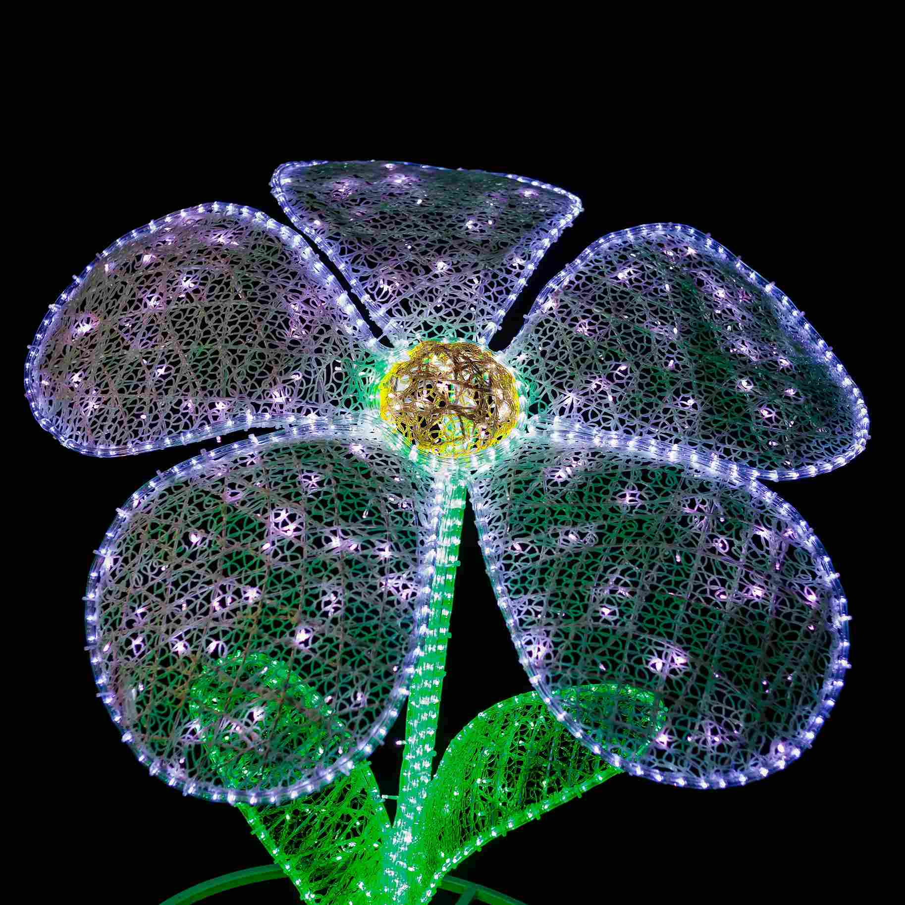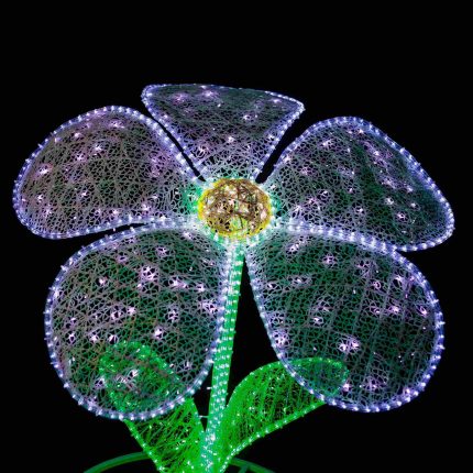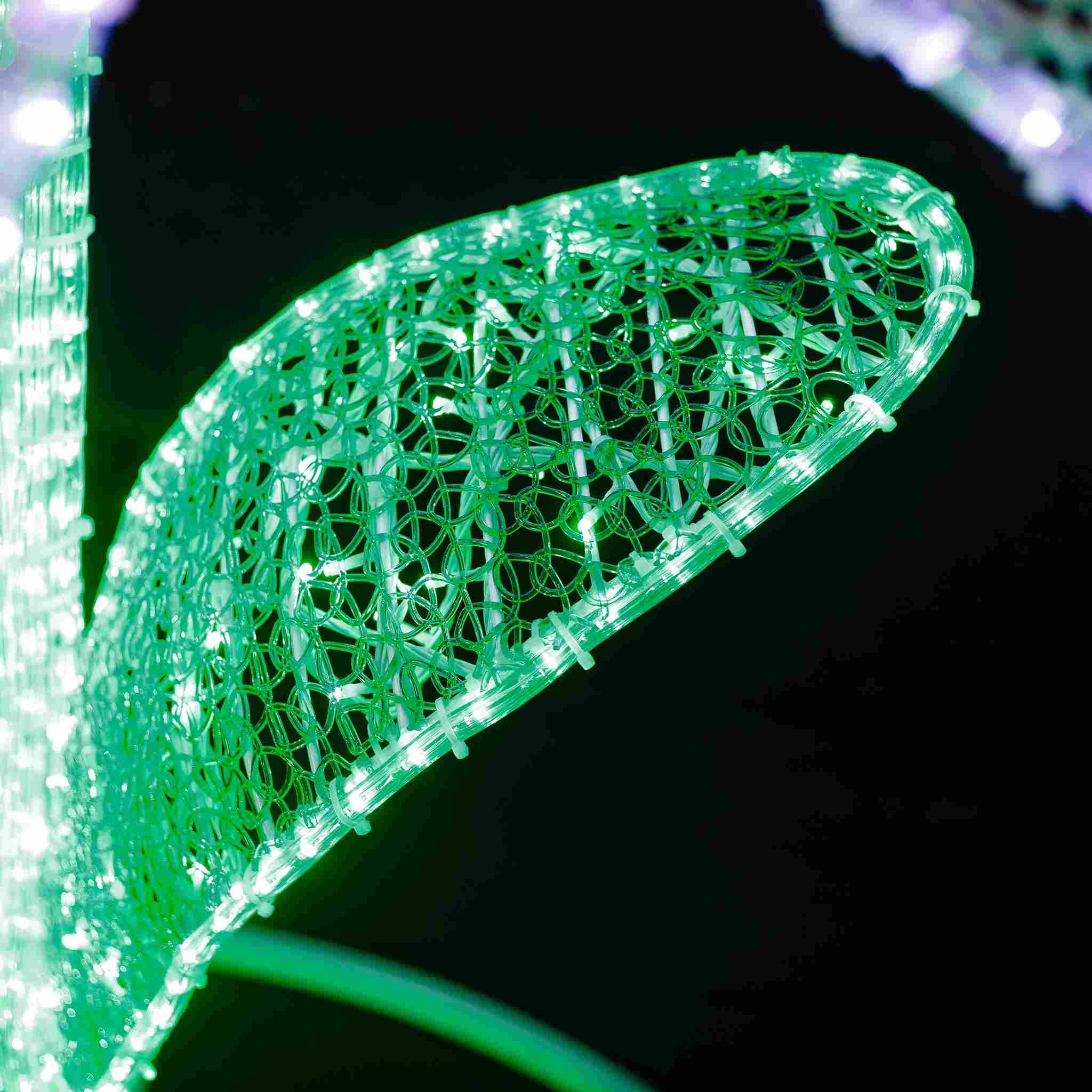Светодиоды равномерно распределены по всей поверхности лепестков и сердцевины, обеспечивая плотное и равномерное свечение. Цвет — на выбор: от классического тёплого до ярких RGB-решений. Возможна индивидуальная настройка под корпоративный стиль или тематику мероприятия.