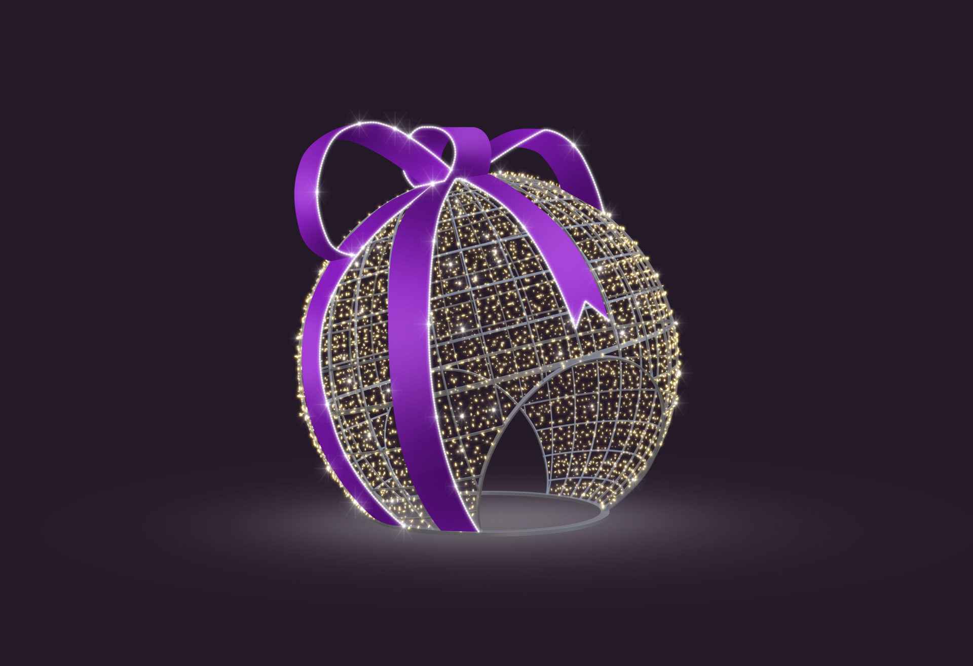 Подобные фигуры часто используются для оформления центральных площадей, новогодних ярмарок, входных зон торговых центров и парков отдыха. «Шар» гармонично дополняет архитектуру города и создаёт яркий акцент в праздничном освещении.