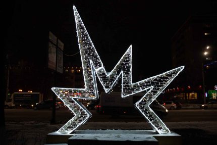Световая фотозона СК‑358‑1 выполнена в формате объёмной 3D‑фигуры на металлическом каркасе. Она предназначена для использования на улице в любое время года, включая зиму. Конструкция устойчива, антикоррозийна, имеет стандарт защиты IP65 и рассчитана на суровые климатические условия.