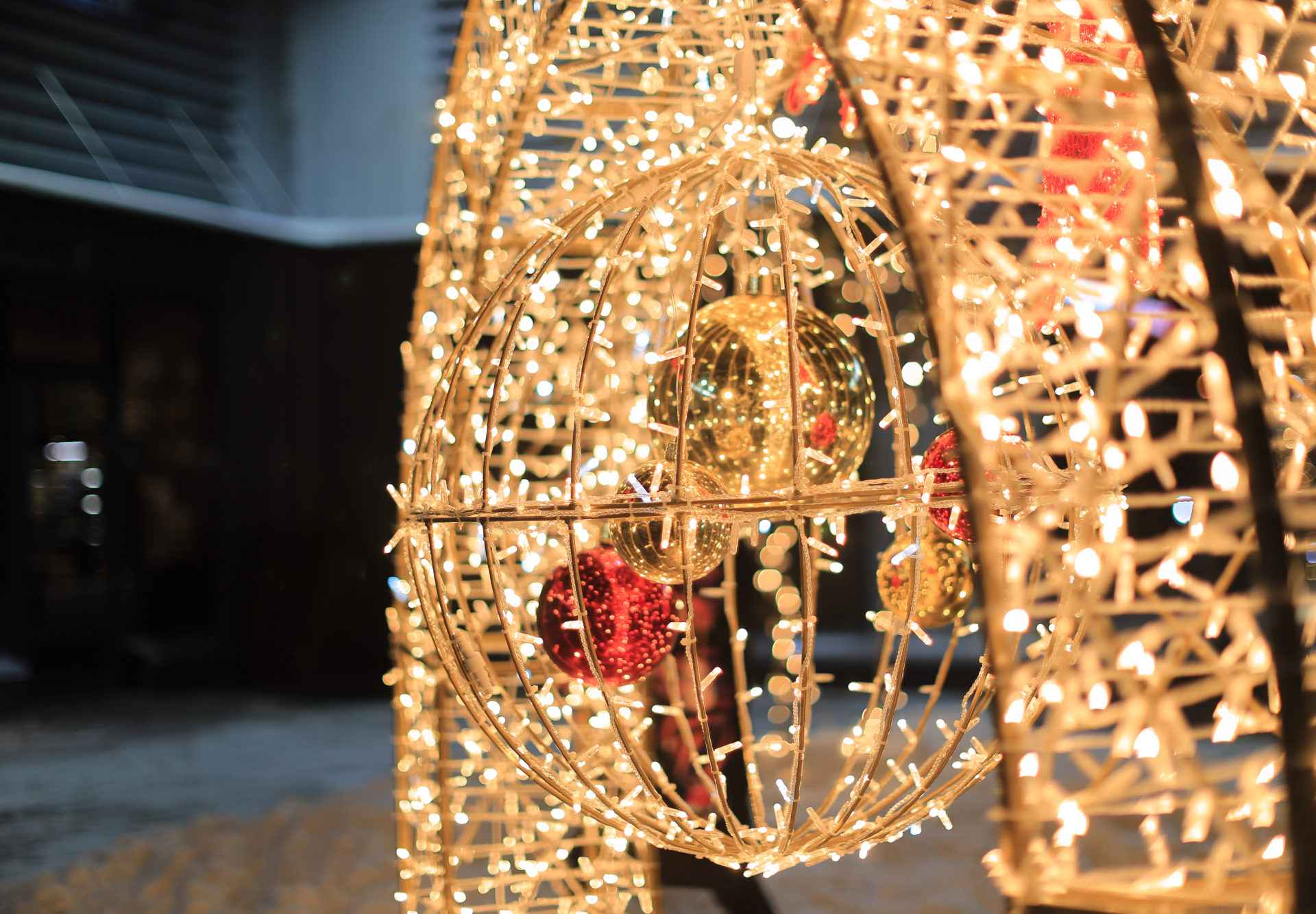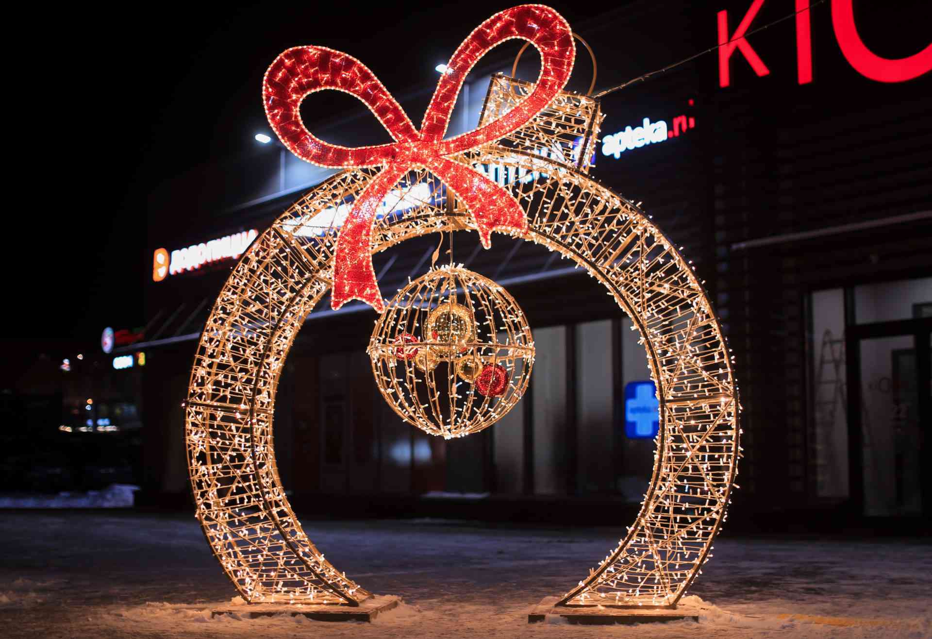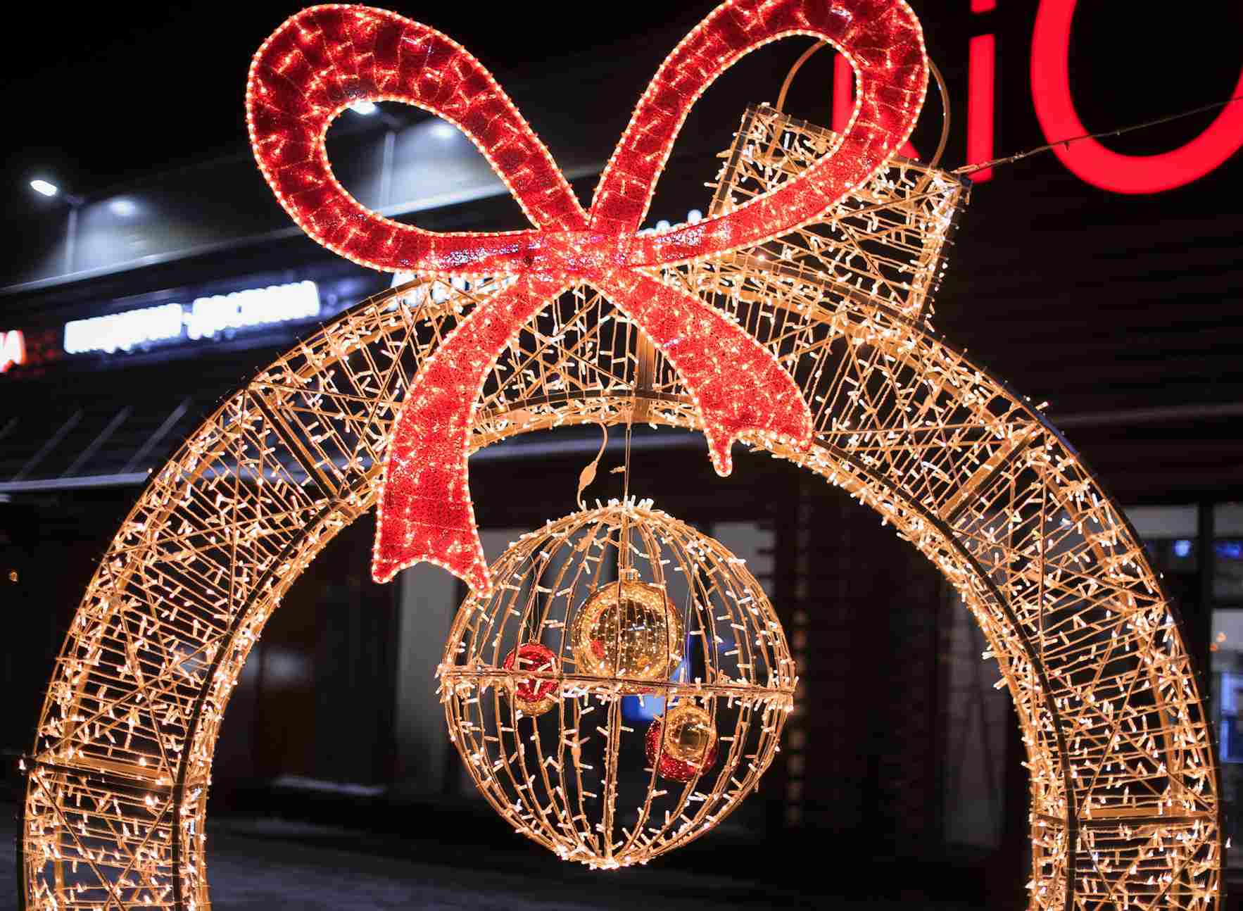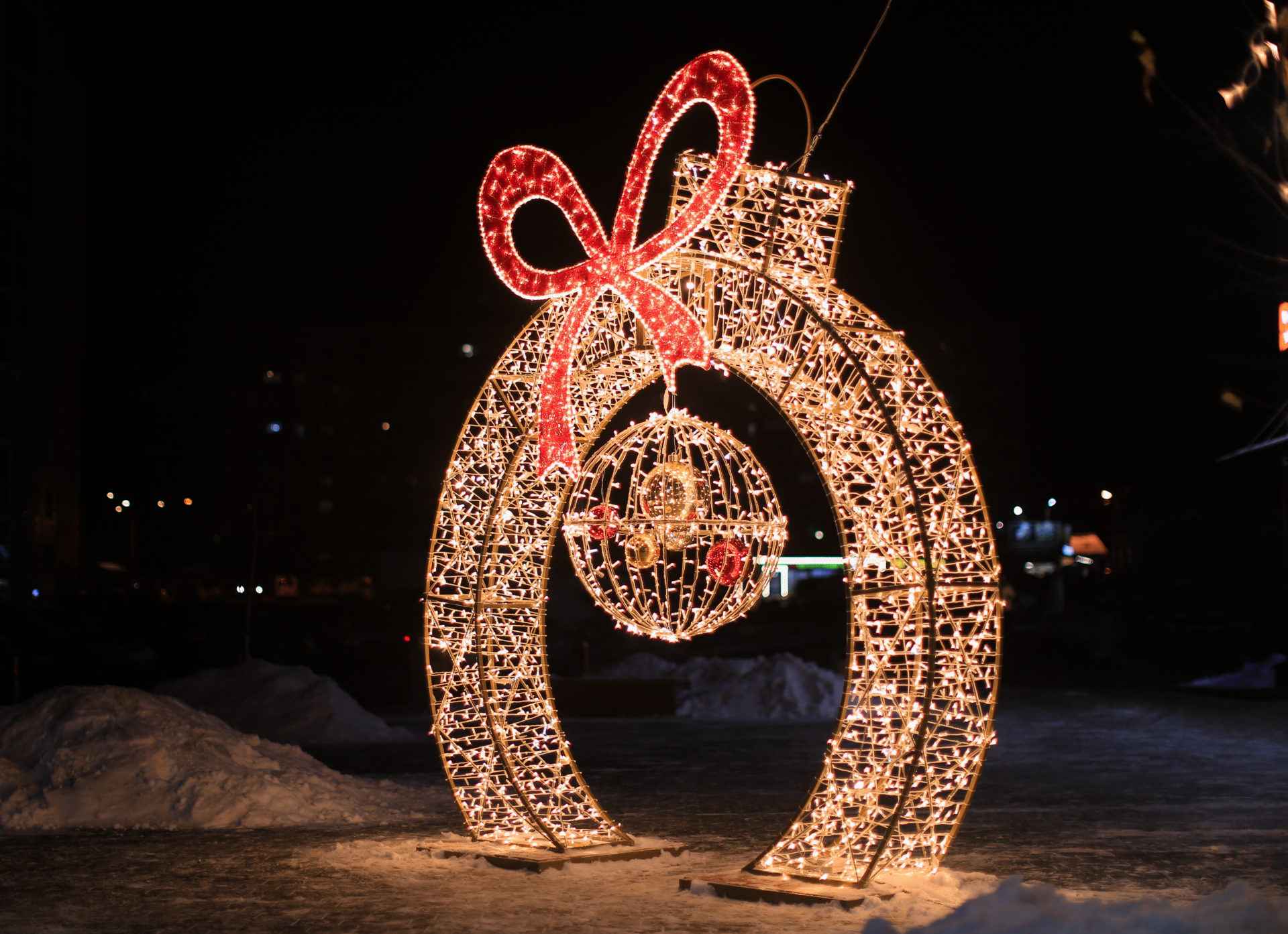 Благодаря красному и тёплому свечению, фотозона создаёт атмосферу тепла и радости. Красный цвет ассоциируется с энергией, праздником и торжеством, а мягкий тёплый оттенок подчёркивает уют и гармонию. Вечером фигура выглядит особенно эффектно: световые линии подчёркивают форму шара, создавая идеальный фон для фотографий и видео.