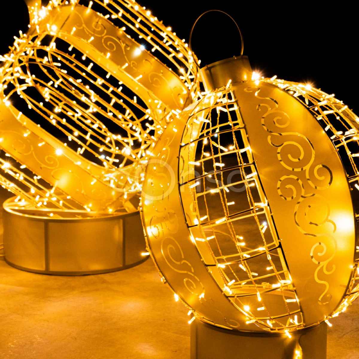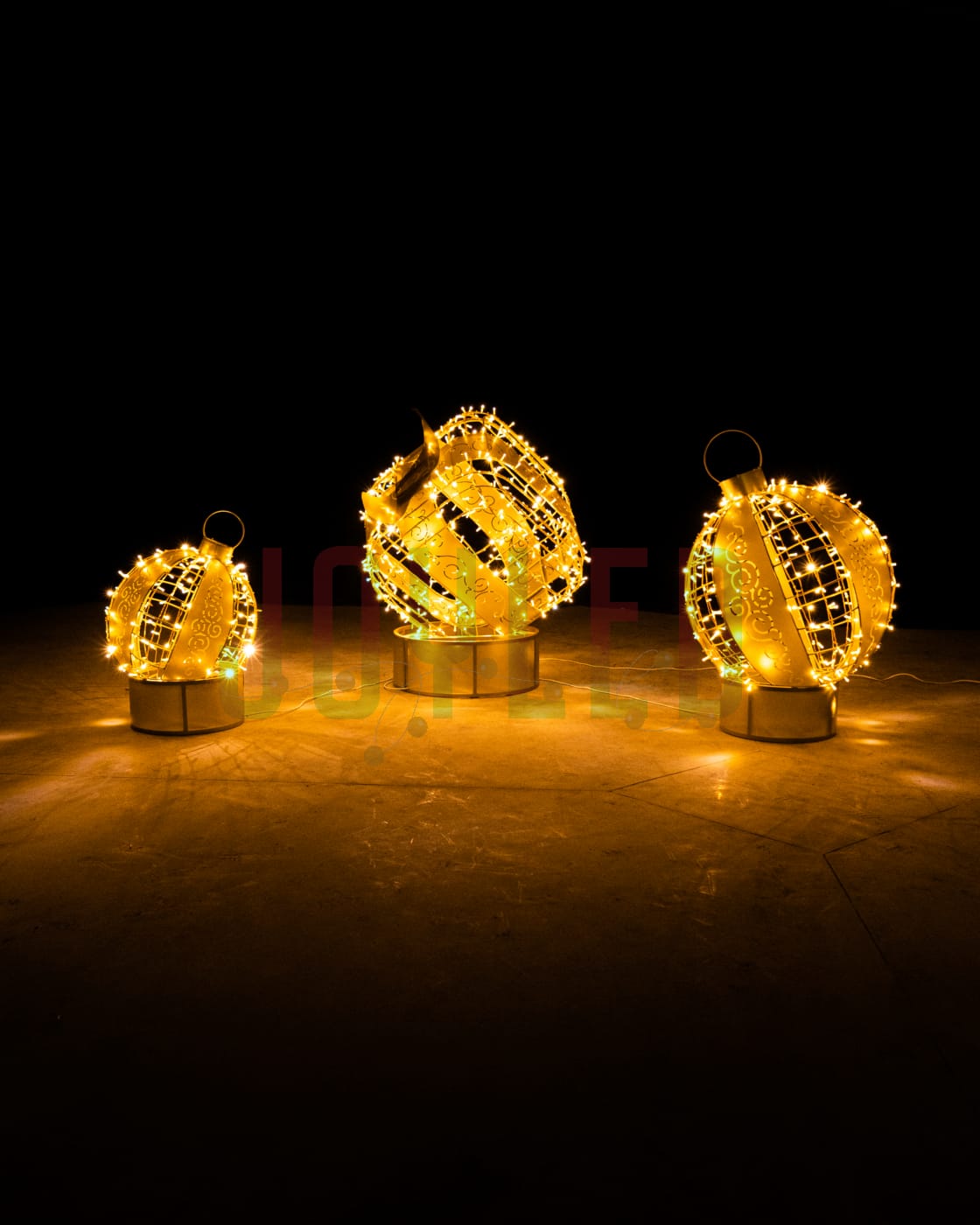 Световая композиция «Подарок с золотыми шарами» — это готовое решение для праздничного оформления общественных пространств и коммерческих объектов. Три фигуры разного размера создают композицию, которая символизирует радость, щедрость и атмосферу зимнего праздника. Такой декор идеально подходит для украшения входных зон торговых центров, центральных площадей, парков, аллей и фотозон.