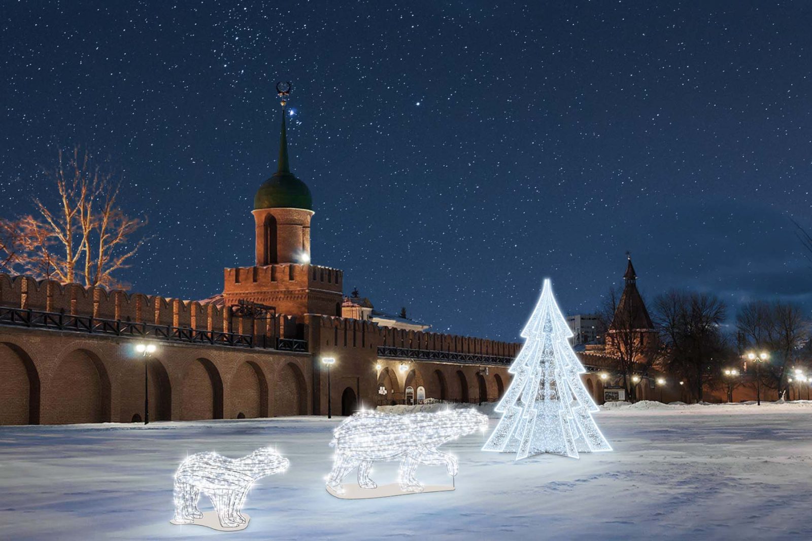 Объёмная световая композиция СК-375 состоит из трёх фигур — ёлки, медведицы и медвежонка. Каркас изготовлен из прочного металла, холодное свечение создаёт зимнее настроение. Отлично подойдёт для украшения улиц, парков, площадей, входных зон ТРЦ и административных зданий. Подключение в комплекте. Установка возможна в любом регионе России.