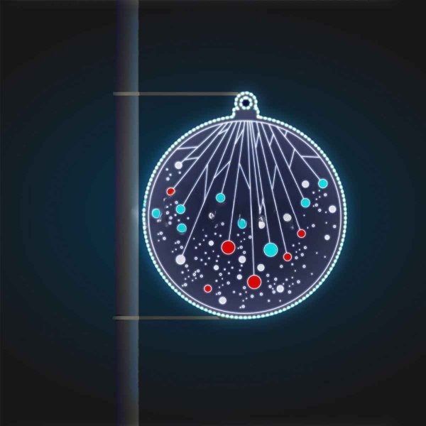 Форма шара — одна из самых универсальных в городском дизайне. Она узнаваема, понятна, воспринимается как символ праздника и гармонии. Консоли можно устанавливать симметрично по обе стороны опор или чередовать с другими мотивами (звёздами, снежинками, надписями и т.д.).