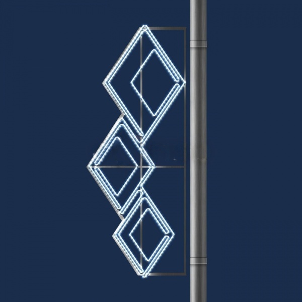 Консоль «Ромбы» — световая 2D-фигура для уличного оформления. Лаконичный геометричный дизайн, холодное белое свечение и прочный алюминиевый каркас делают эту консоль универсальным решением для декора улиц, опор освещения, фасадов. IP65, подключение от сети 220 В.