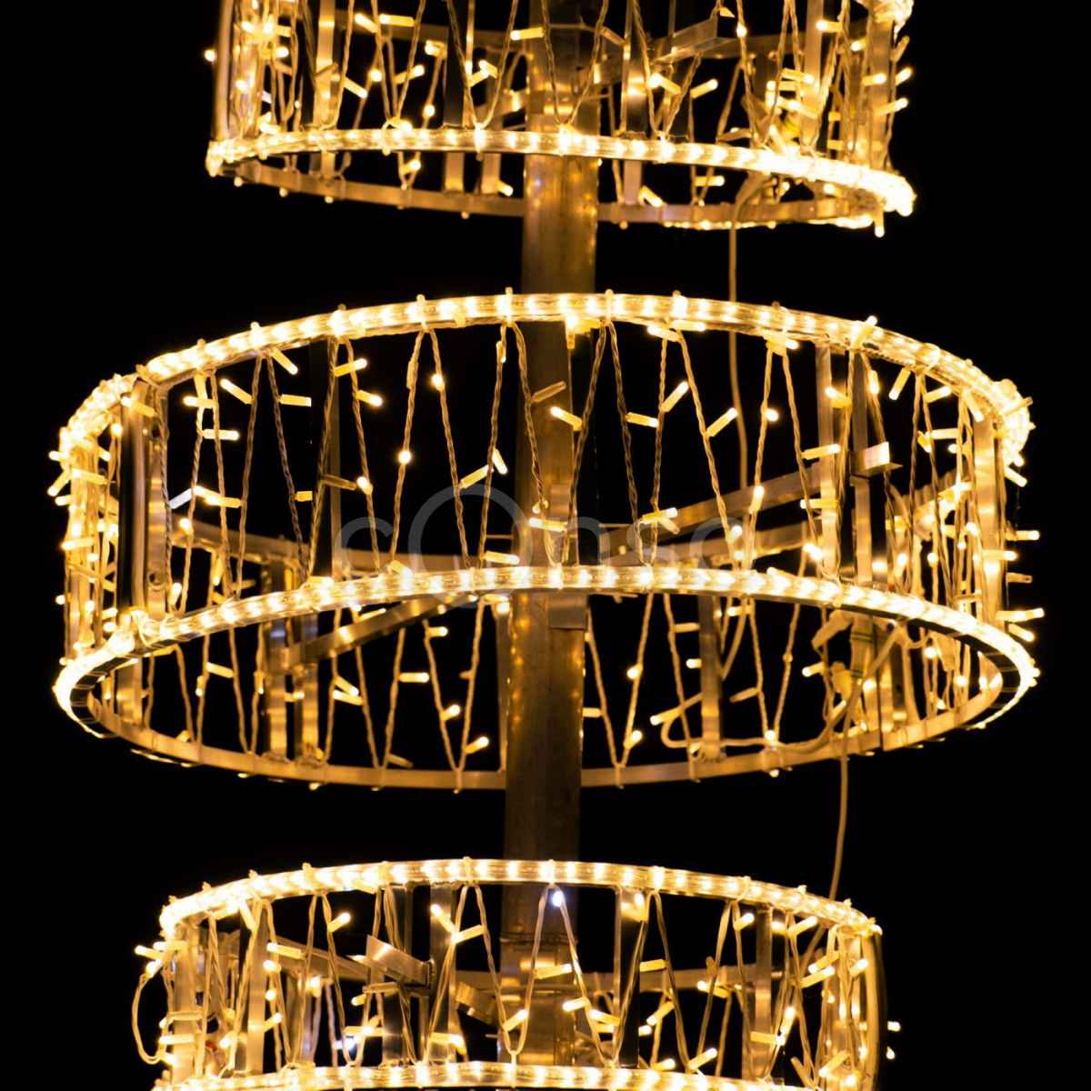 Световая консоль «Золотые кольца» — элегантный уличный декор для новогоднего оформления фасадов, опор освещения и входных зон. Размер — 1×1,2 м, свечение — золотое. Каркас из алюминия, надёжная защита IP65, готова к эксплуатации при –50 °C. Монтаж под ключ от JOYLED.