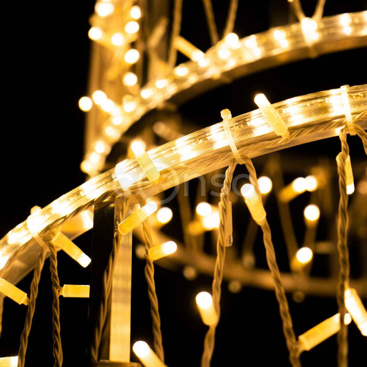 Золотые кольца — символ достатка, тепла и радости. Такая фигура подойдёт не только для классического новогоднего оформления, но и для торжественных мероприятий, Дня города, праздничных вечеров. Она сочетается с другими элементами светового оформления: арками, растяжками, световыми деревьями и фотозонами.
