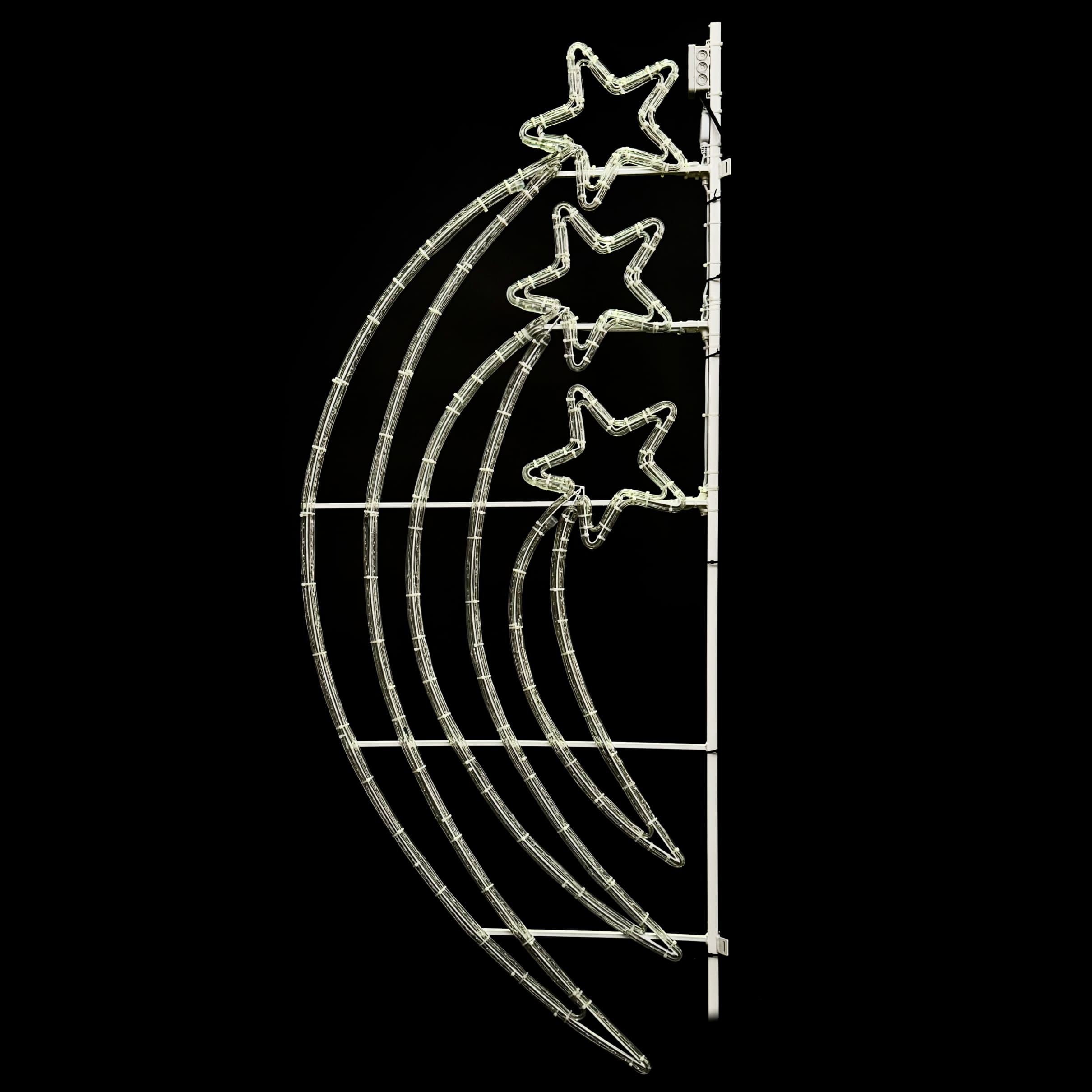 Светодиодная консоль «Звёздный путь» — это уличная световая фигура из серии OPTIMA‑PRO, предназначенная для оформления опор освещения, фасадов зданий, пешеходных зон и центральных улиц в праздничные дни. Размер изделия — 0,8×2 метра, что делает его хорошо заметным даже с расстояния. Благодаря каркасной конструкции и контрастному свечению, консоль мгновенно притягивает внимание и формирует праздничное настроение в любой городской среде.