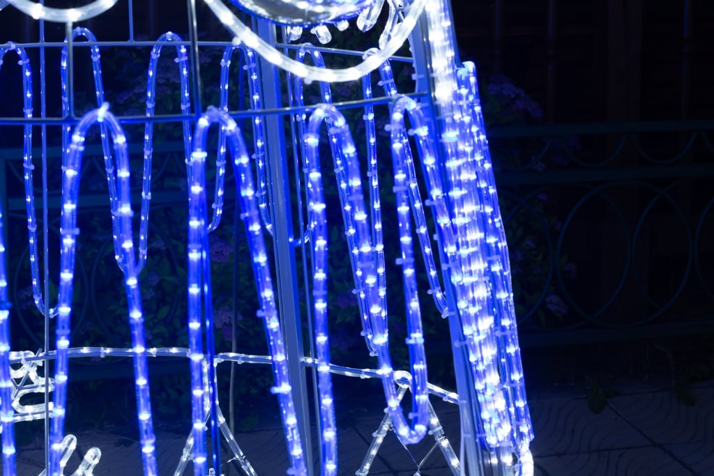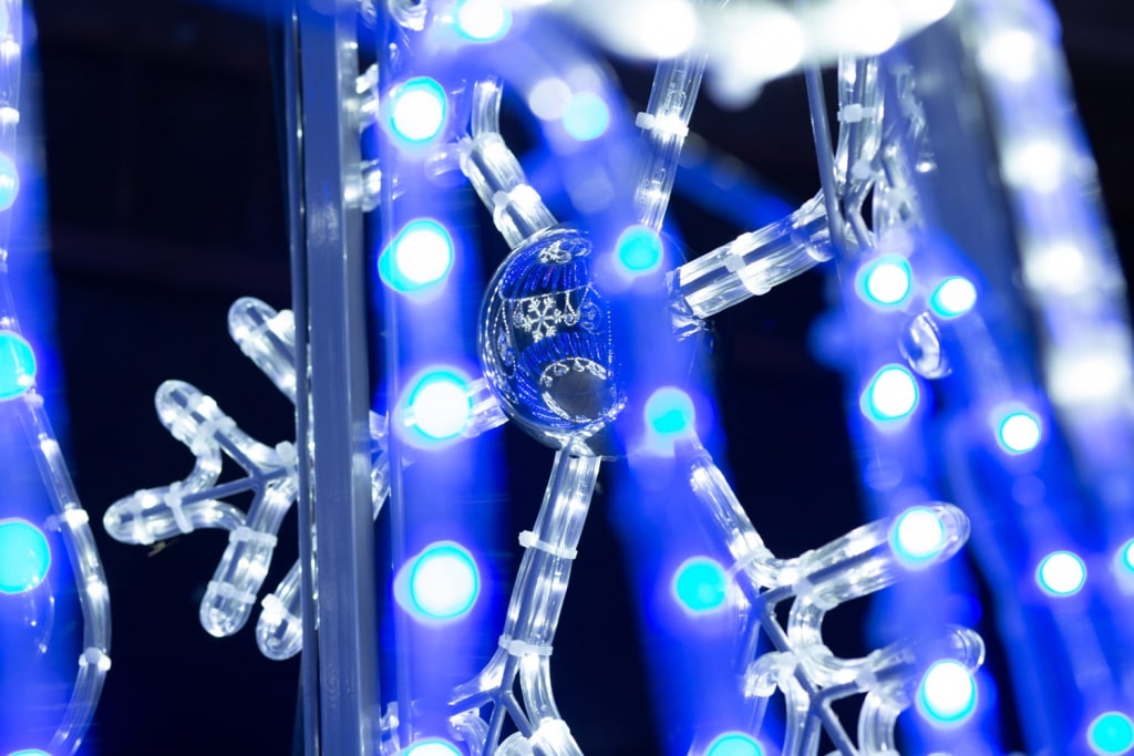 Световая конструкция «Снежинка» — яркий декоративный элемент для улиц, площадей и входных зон ТРЦ. Каркас из оцинкованной стали, устойчивость к снегу и влаге, безопасное напряжение 24 В. Доступна цветовая гамма: бело-синяя или любой оттенок на выбор. JOYLED выполняет монтаж, подключение и оформление под ключ. Отличный акцент для новогодних пространств.