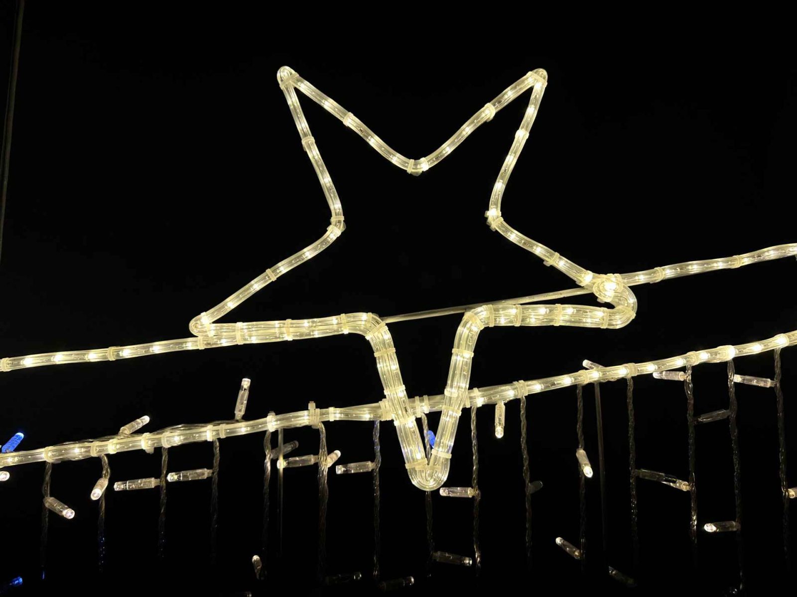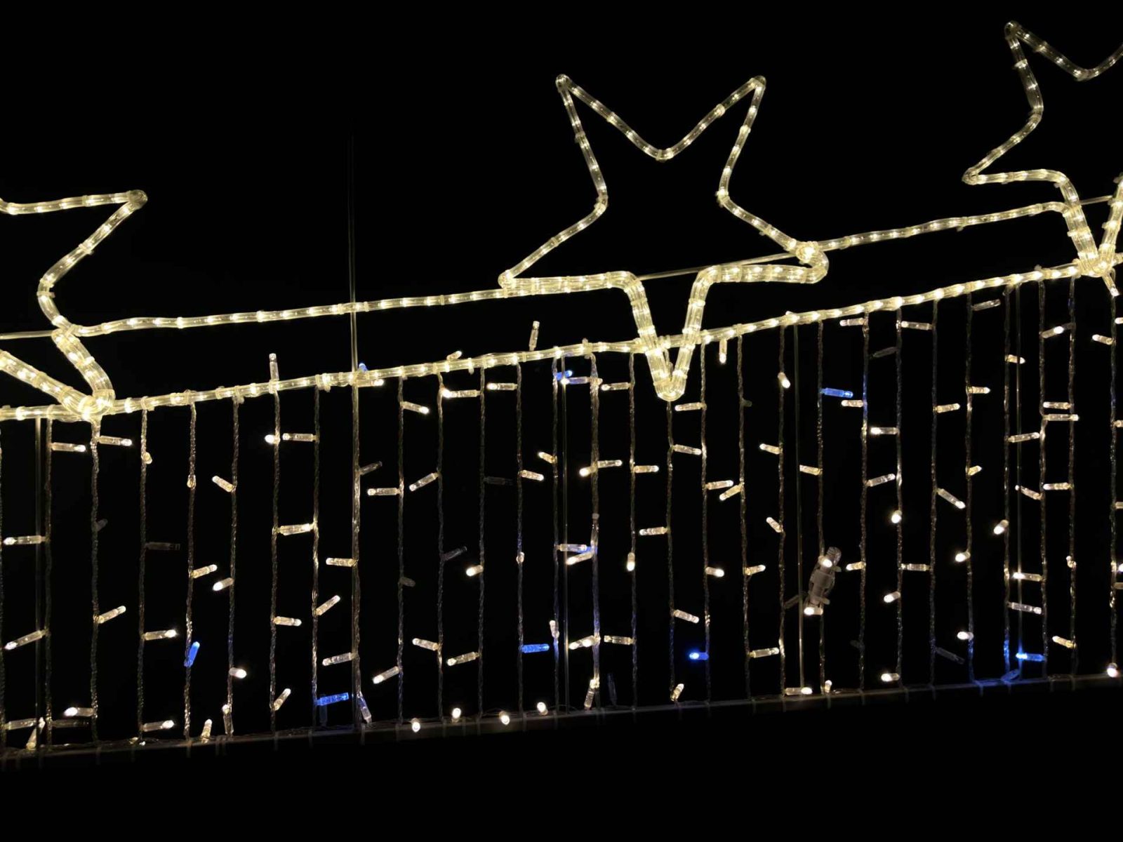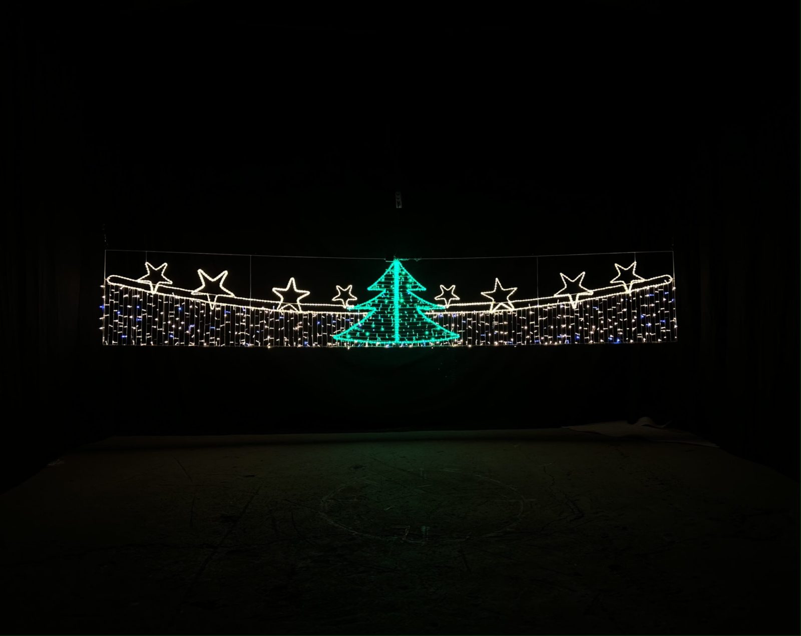 Световая перетяжка СК-138 — это стильное решение для праздничного и архитектурного оформления. Её размещают над проезжими частями, пешеходными улицами или входными зонами. Конструкция протягивается поперёк улицы и создаёт эффект праздничного свода, подчеркивая масштаб события и задавая настроение всему пространству.