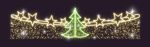 Световая перетяжка СК-138 от JOYLED — декоративная конструкция для оформления улиц, проспектов и площадей. Размер 6×1 м, металлический каркас, защита IP65, надёжные светодиоды с ресурсом 50 000 часов. Доступны два цвета свечения: зелёный и золотой. Конструкция подходит для новогоднего и городского декора, а также для корпоративных мероприятий.