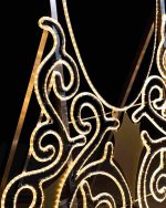 Размер фотозоны — 1,88×2,9 м, глубина конструкции позволяет установить её на улице или внутри больших помещений. Такое масштабное исполнение обеспечивает максимальную видимость и создаёт естественную зону для фотографий. Люди инстинктивно тянутся к свету, а в окружении золотого сияния снимки получаются особенно праздничными и атмосферными.