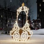 Фотозона «Зеркало» хорошо сочетается с другими световыми фигурами: арками, ёлками, композициями в виде животных или праздничных символов.