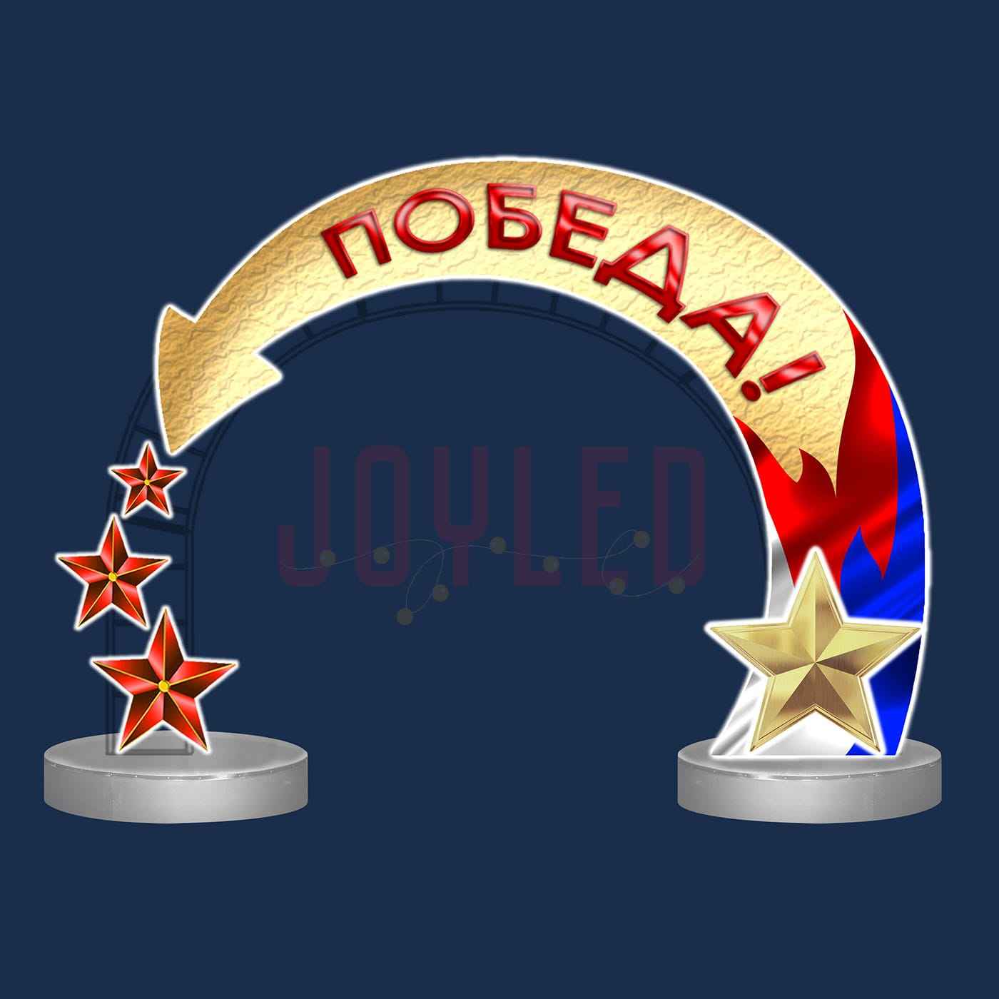Световая арка «Победа» изготовлена из профессиональных материалов, подходящих для круглосуточного уличного применения: