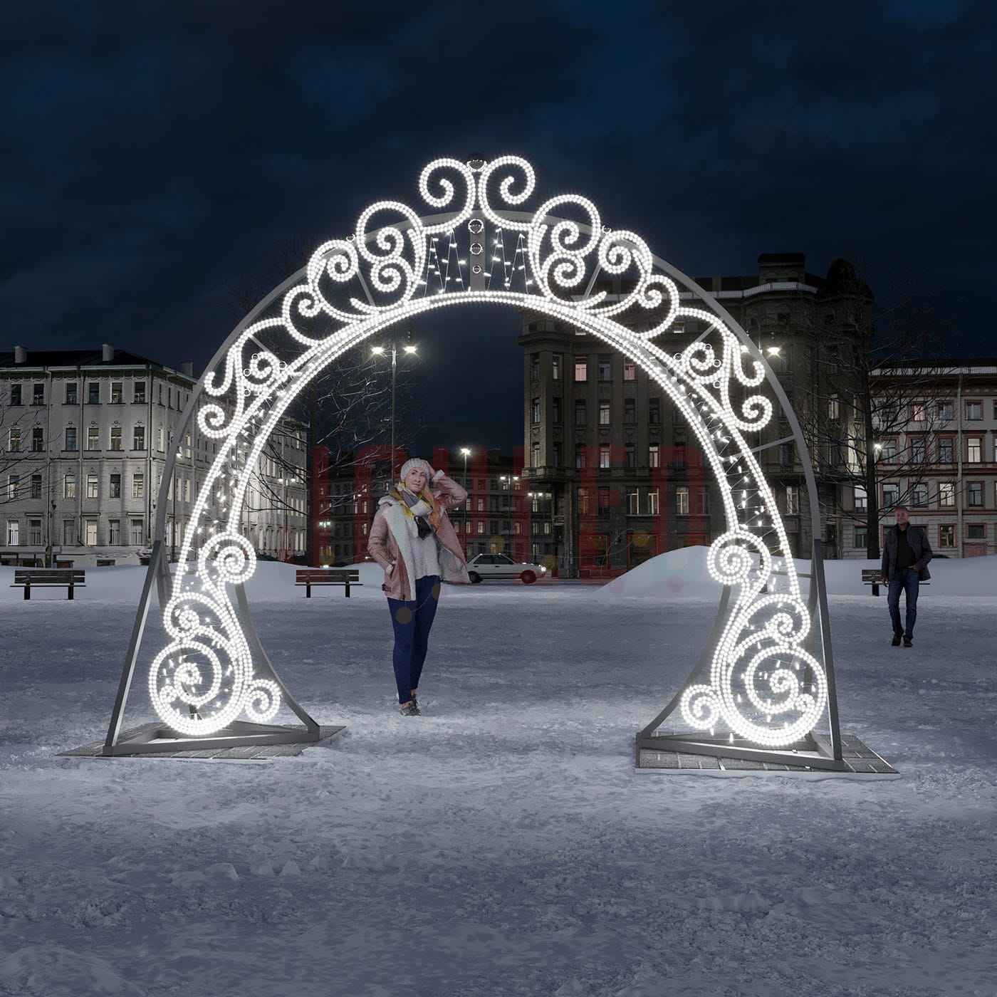Световая арка «Снегурочка» от JOYLED — это не просто украшение, а ключевой элемент в оформлении городской среды или коммерческого пространства. Такая арка создаёт эффект входа в зимнюю сказку, подчеркивает стиль всей территории и становится местом притяжения для жителей и гостей. Её устанавливают у главного входа в ТЦ, в скверах, у катков, у новогодних ёлок или как отдельный арт-объект на пешеходных улицах.