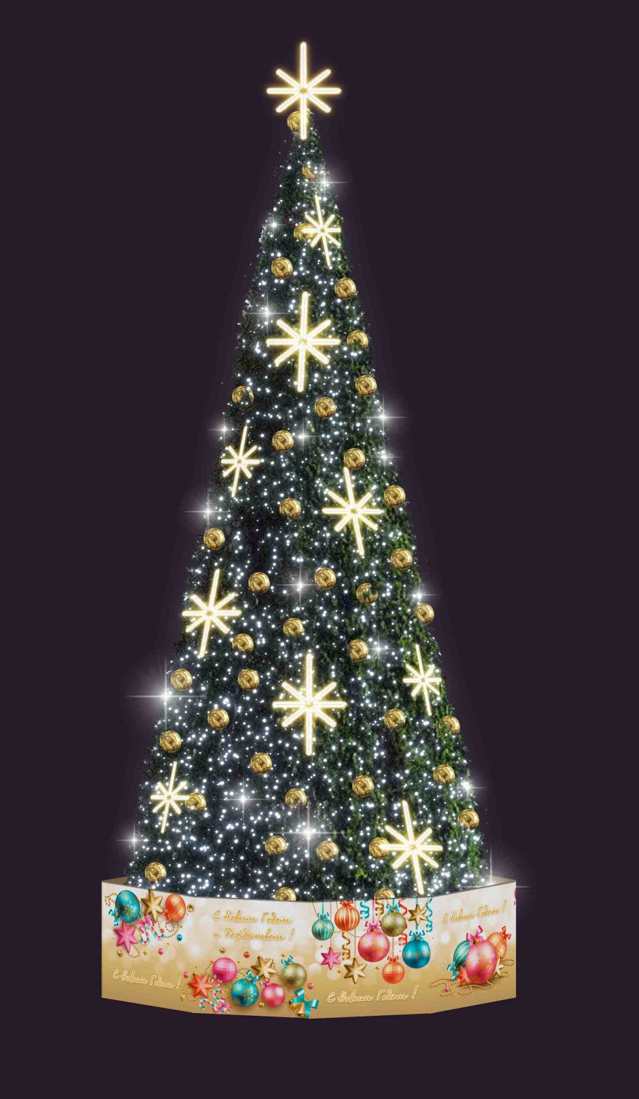 Эта ель — не просто декорация, а визуальный символ Нового года, который собирает людей, притягивает внимание и работает на ваш имидж.