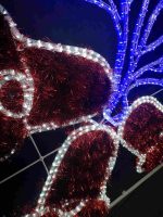 Фигура выполнена в каркасной технике, относится к 2D-плоскостным световым конструкциям, но при этом сохраняет визуальную объёмность за счёт рисунка и световых контуров. Используется как самостоятельный элемент или в составе более крупной новогодней композиции.