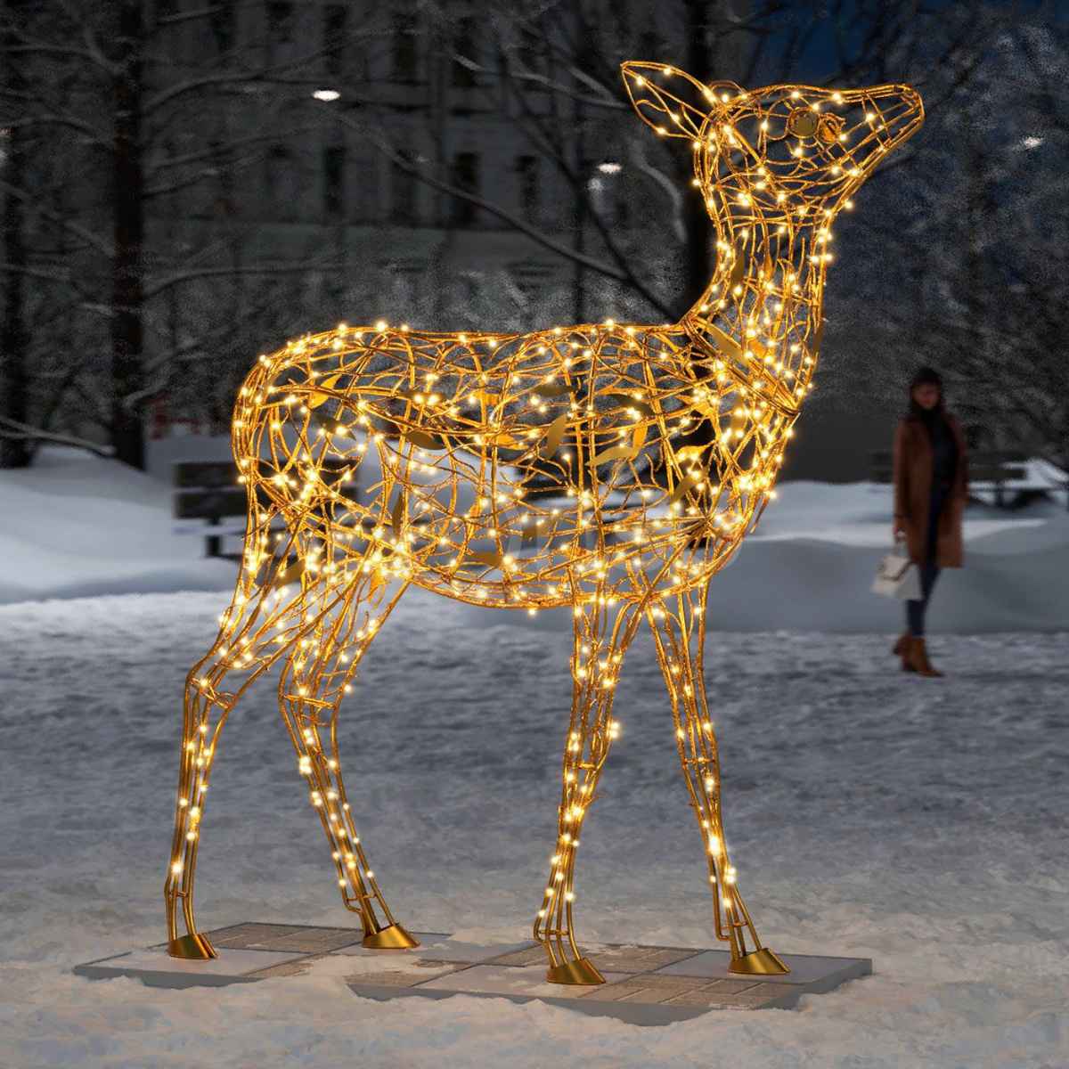 Серебряный свет придаёт оленёнку современный, элегантный вид и подчёркивает чистоту линий. Такое освещение гармонично вписывается в минималистичные интерьеры торговых центров и современную городскую архитектуру.