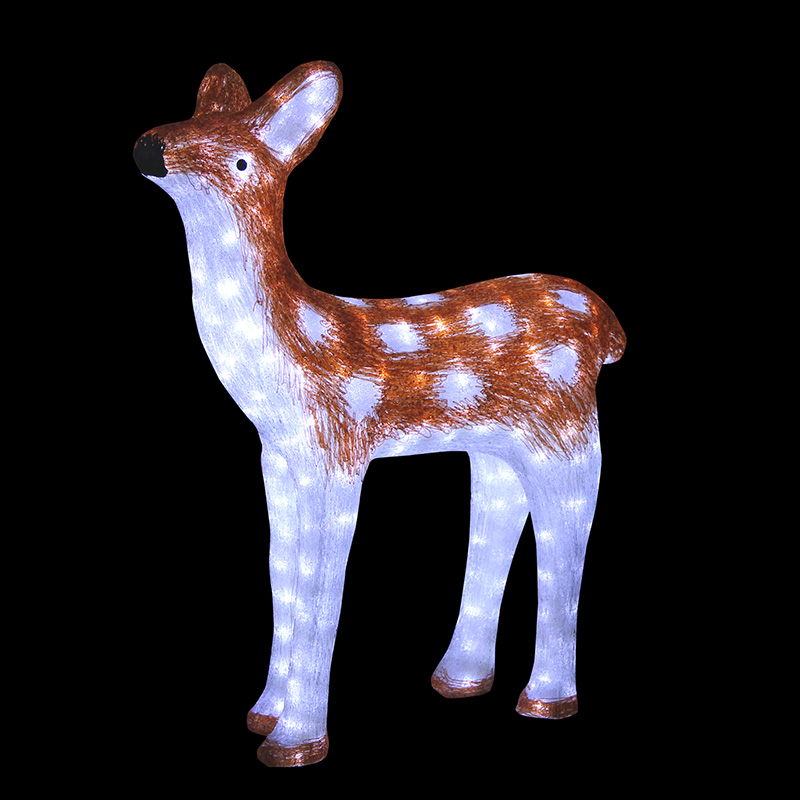 Световая фигура «Оленёнок коричневый» — компактное и тёплое украшение для улицы или входной группы. Высота — 85 см, материал — акрил, свет — белый, IP65. Подходит для оформления ТЦ, парка, загородного дома. Установка и подключение под ключ от JOYLED.