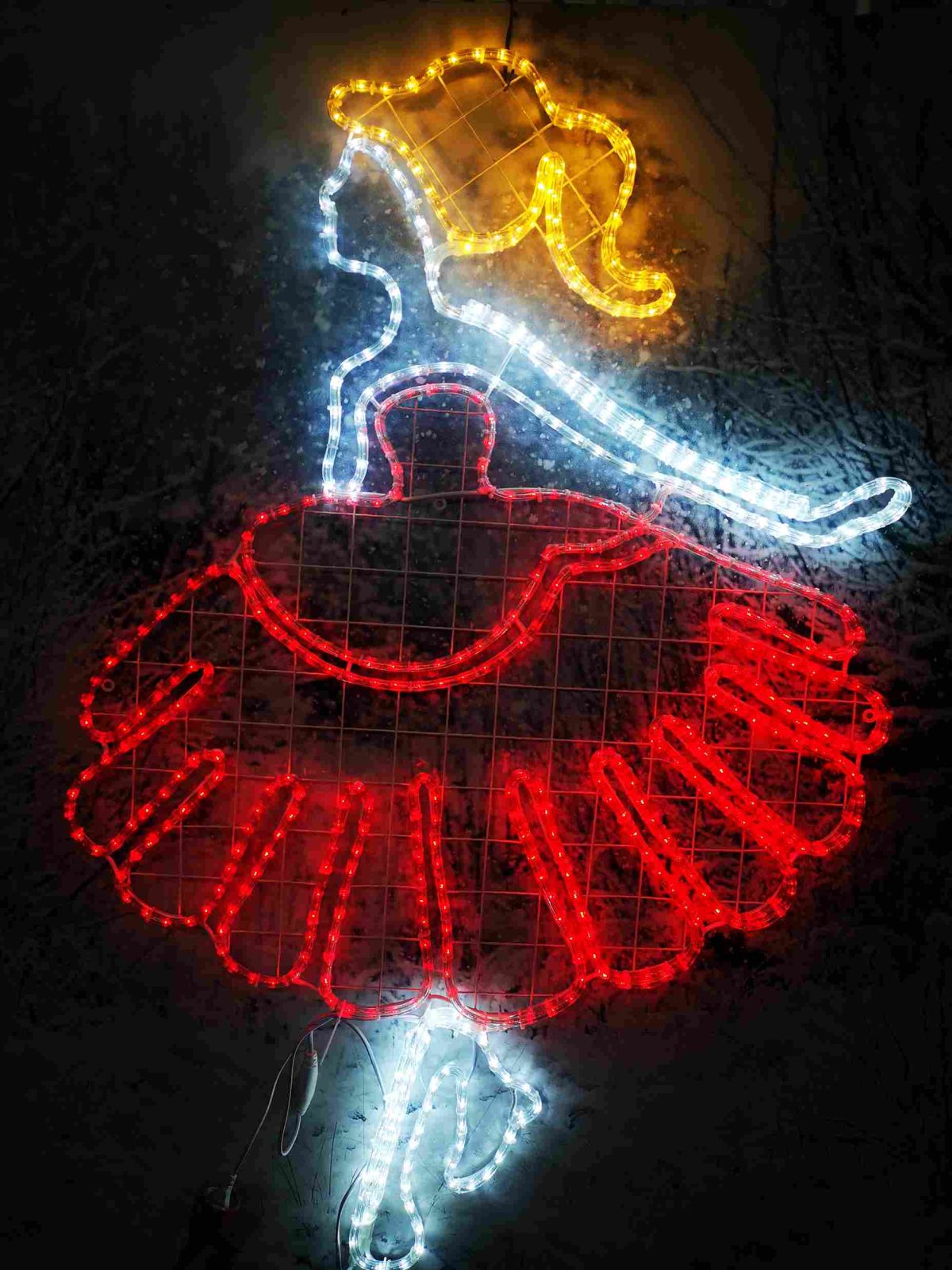 Световая фигура «Принцесса» — это воплощение волшебства и мечты. Её силуэт легко читается даже издалека, а изящный каркас с яркой подсветкой создаёт атмосферу сказочного праздника. Такая фигура идеально подходит для новогоднего оформления улиц, общественных пространств, парков и площадей. Она вызывает улыбку у детей, создаёт романтическое настроение у взрослых и становится ярким акцентом в любой композиции.