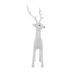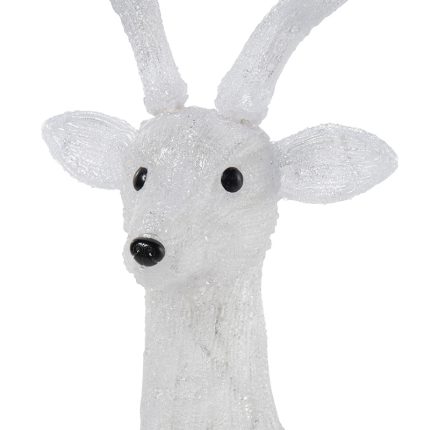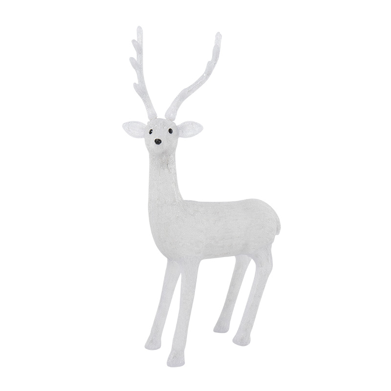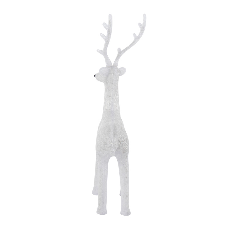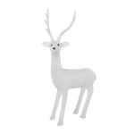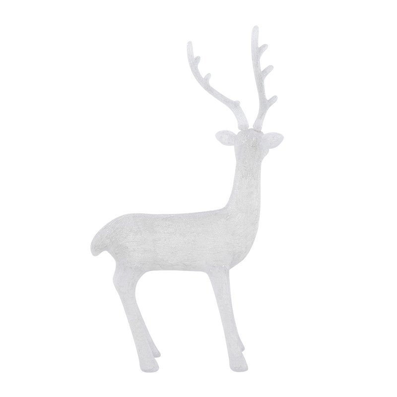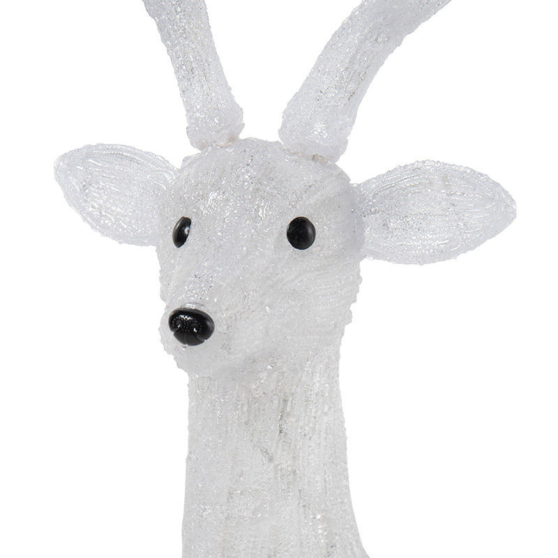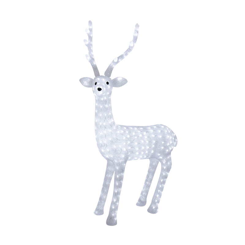 Фигура выполнена в классическом белом свечении, что делает её уместной как в сольном исполнении, так и в составе композиции. Такой олень прекрасно смотрится рядом с ёлкой, снежинками, звёздами, световыми деревьями или декоративными арками.