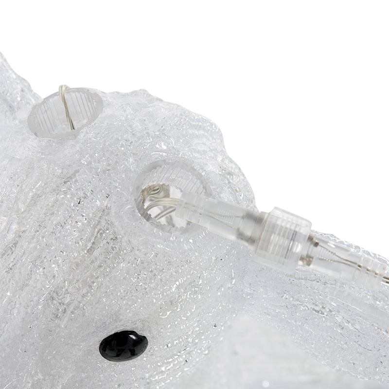 Главная особенность этой фигуры — литой акриловый корпус, равномерно рассекающий свет от встроенных светодиодов. В отличие от металлических каркасных моделей, акриловый корпус создаёт эффект цельного свечения, делая фигуру особенно заметной в вечернее время.