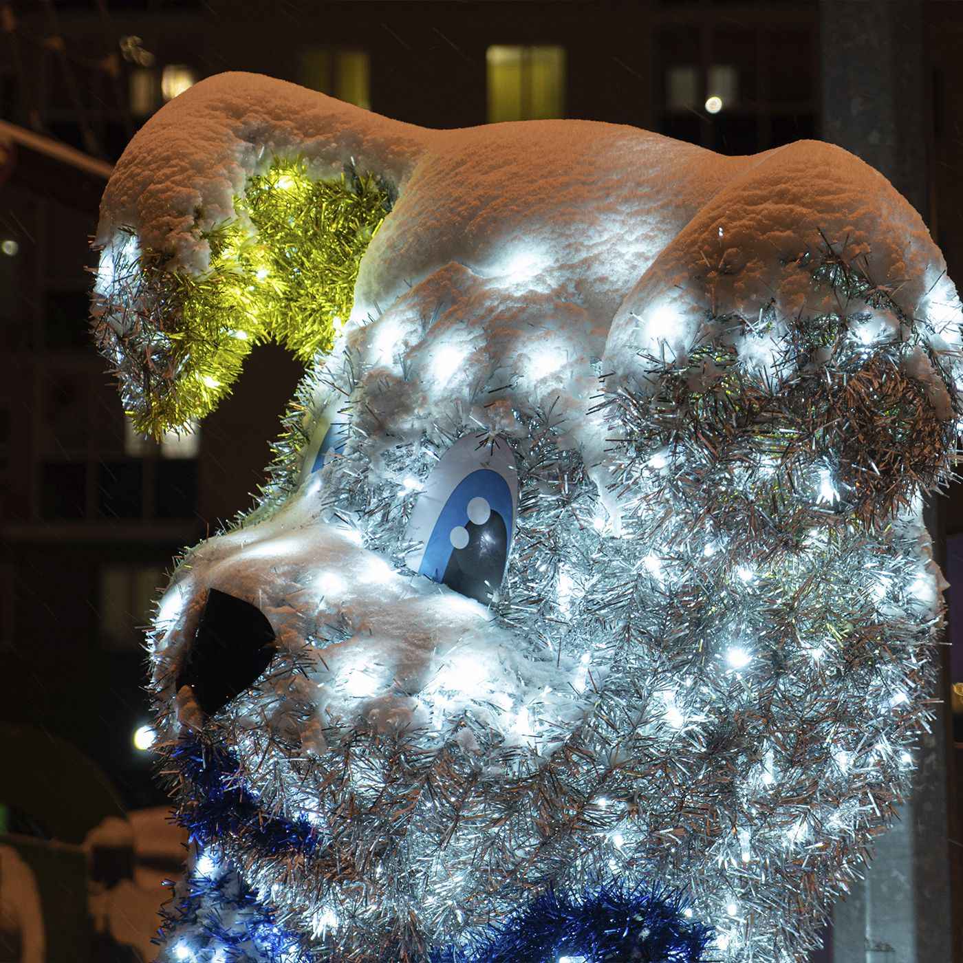 Фигура входит в серию премиальных объектов для городского, коммерческого и праздничного оформления. Благодаря мишурному покрытию и ровному холодному свечению, «Щенок» выглядит ярко даже в дневное время, а вечером превращается в настоящую фотомагнитную точку.