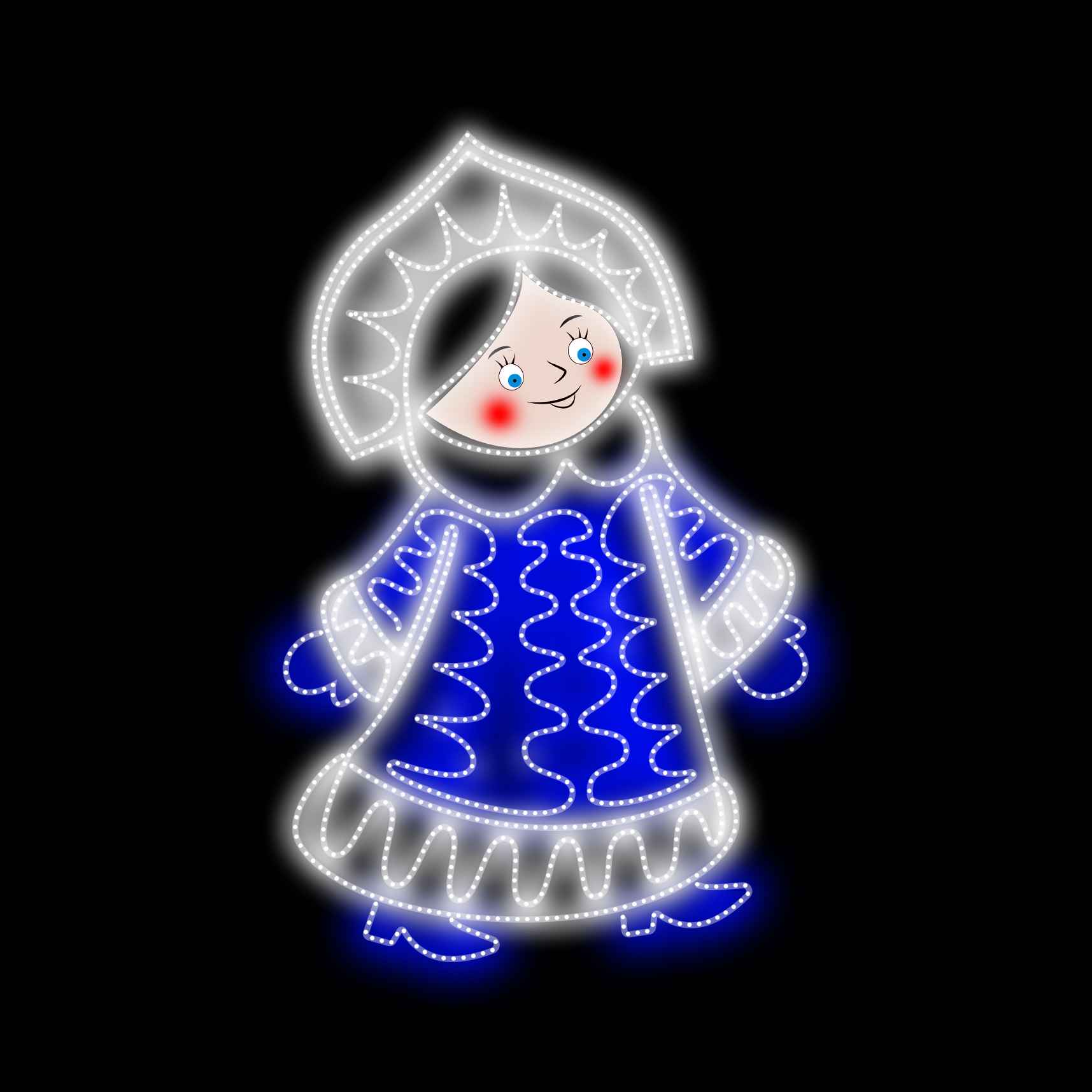 Световая фигура «Снегурочка кружевная» — это не просто праздничный элемент. Это образ, узнаваемый с первого взгляда, ассоциирующийся с детством, теплом и чудом. Благодаря кружевной графике и точной прорисовке силуэта, фигура притягивает взгляды, вызывает улыбку и дарит атмосферу праздника.