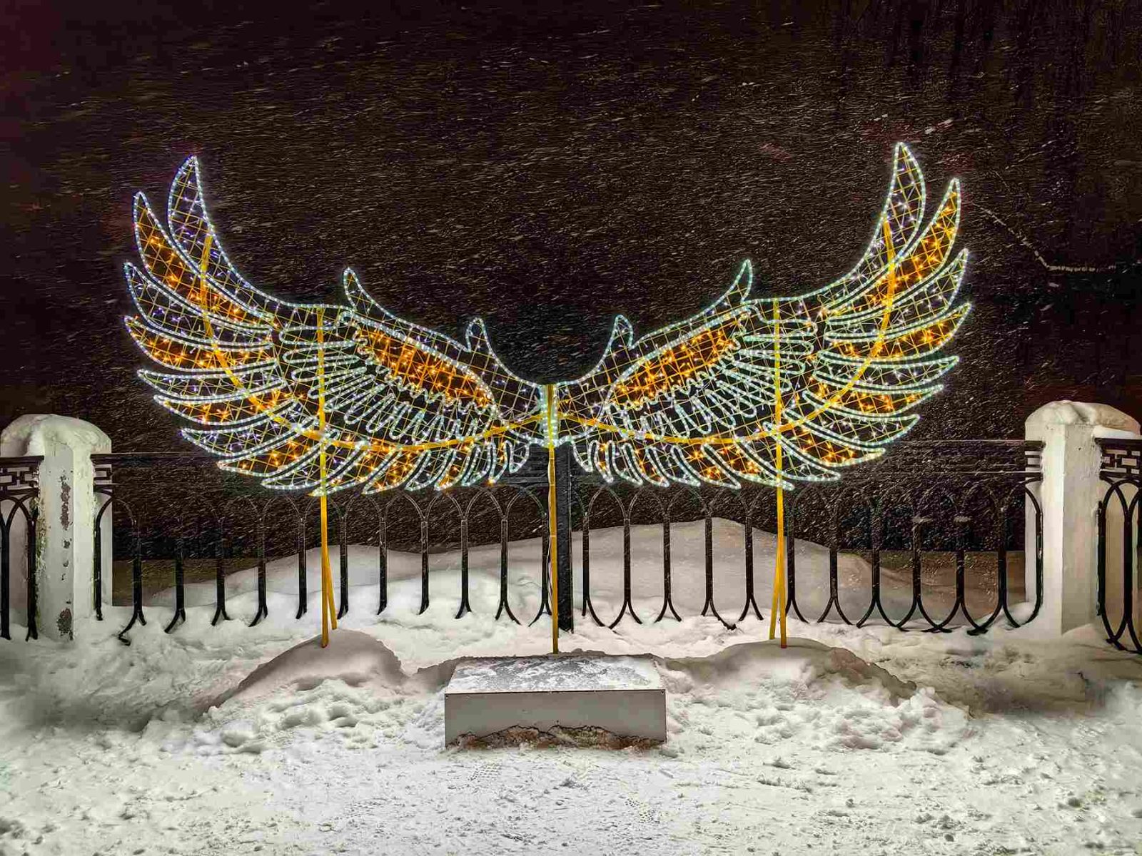 Крылья светодиодная фотозона с подиумом, 2,55м, IP54, золотой свет