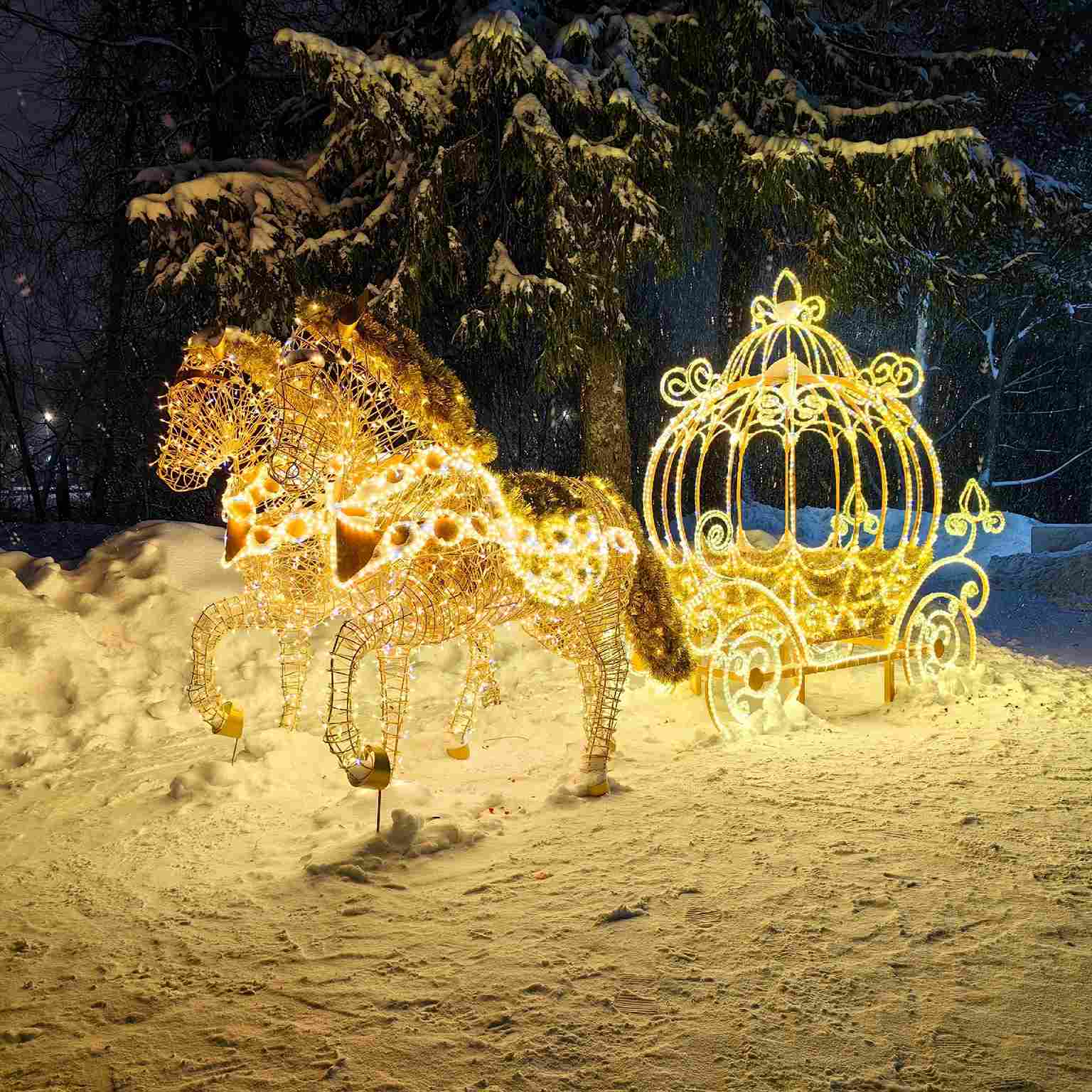 Световая композиция JOYLED «Карета с лошадьми» — это не просто фигура. Это символ праздника, который дарит радость и создаёт атмосферу торжества. Она становится центром притяжения и украшением любого пространства.