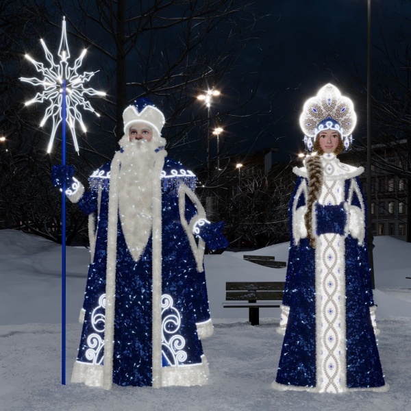 Композиция JOYLED «Дед Мороз и Снегурочка в синих шубах» — это эффектная пара праздничных фигур, выполненных в холодном свечении. Они создают атмосферу зимней сказки и становятся главным акцентом любого пространства.
