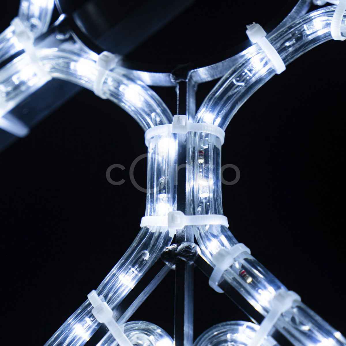 Свечение консоли — статичное, равномерное, насыщенного холодного оттенка. Это самый универсальный тип света для новогоднего и зимнего оформления. Он чётко читается на фоне ночного города и подчёркивает форму снежинки.